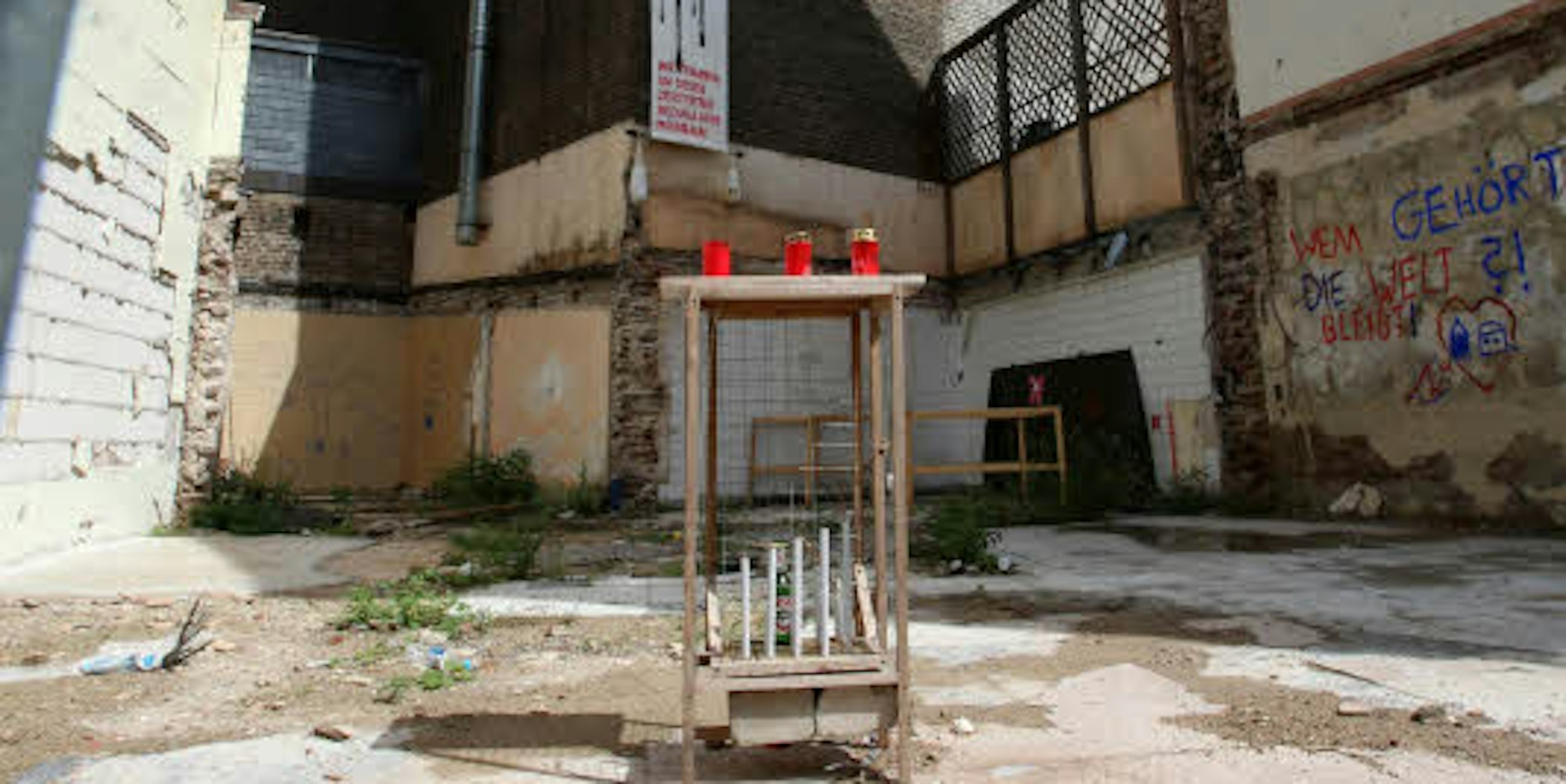 Grablicht-Protest: Wo am Kartäuserwall eine Familie 28 Jahre lang lebte, klafft eine Lücke mit zubetoniertem Keller.