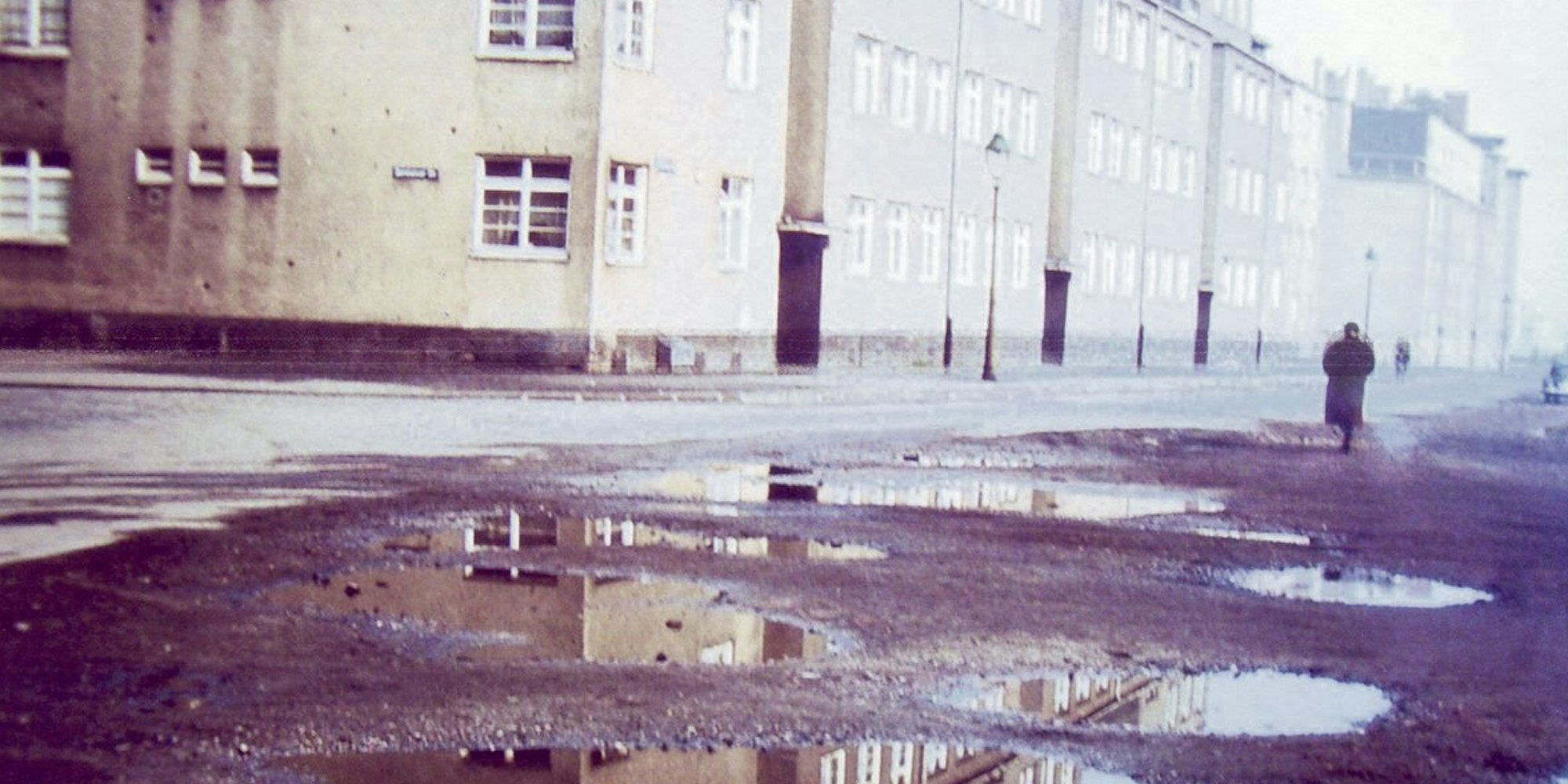 Die frühe Farbaufnahme zeigt den Zustand des Zollstockgürtels nach dem Zweiten Weltkrieg.