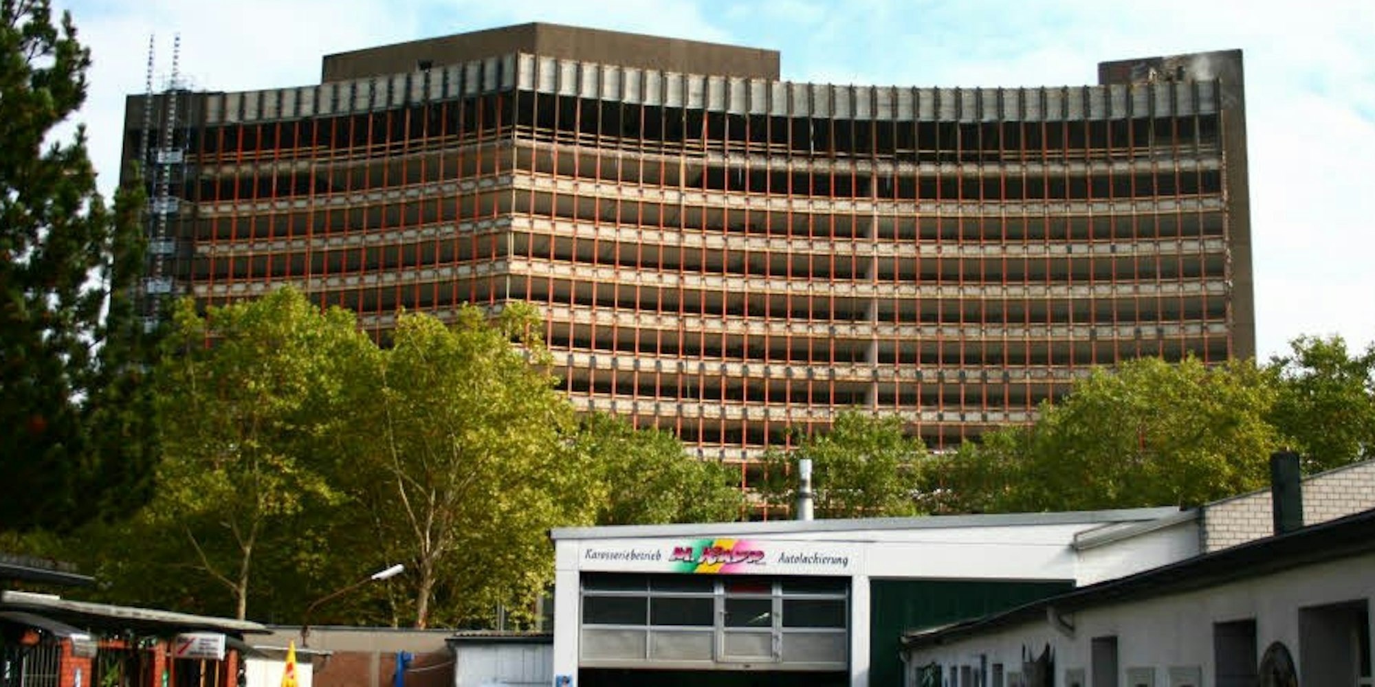Bayenthal – Auf dem Hof der Autowerkstatt in der Alteburger Straße ist spürbar, dass nebenan die Zukunft begonnen hat. Seit das frühere BDI-Hochhaus am Gustav-Heinemann-Ufer zur Wohnanlage umgebaut wird, kommt es vor, dass im kleinen Büro von Gertrud Berg die Modellautos in der Glasvitrine scheppern, wenn auf der Baustelle ein großes Stück Mauerwerk niedergeht oder die Arbeiter Fassadenteile aus den oberen Stockwerken hinunterwerfen.