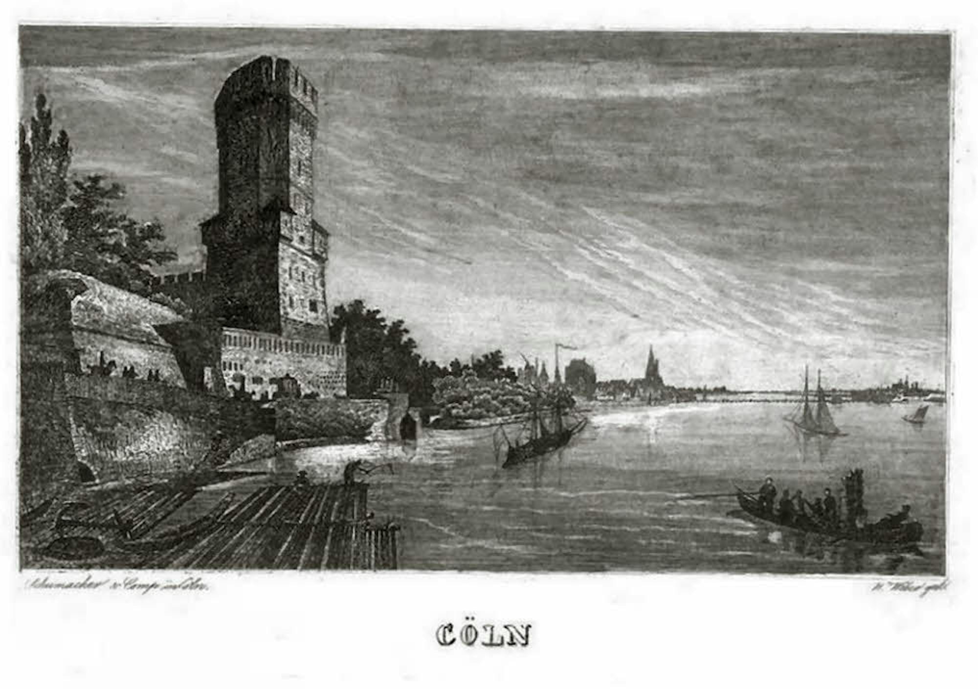 Floßholz vor dem Bayenturm um 1830