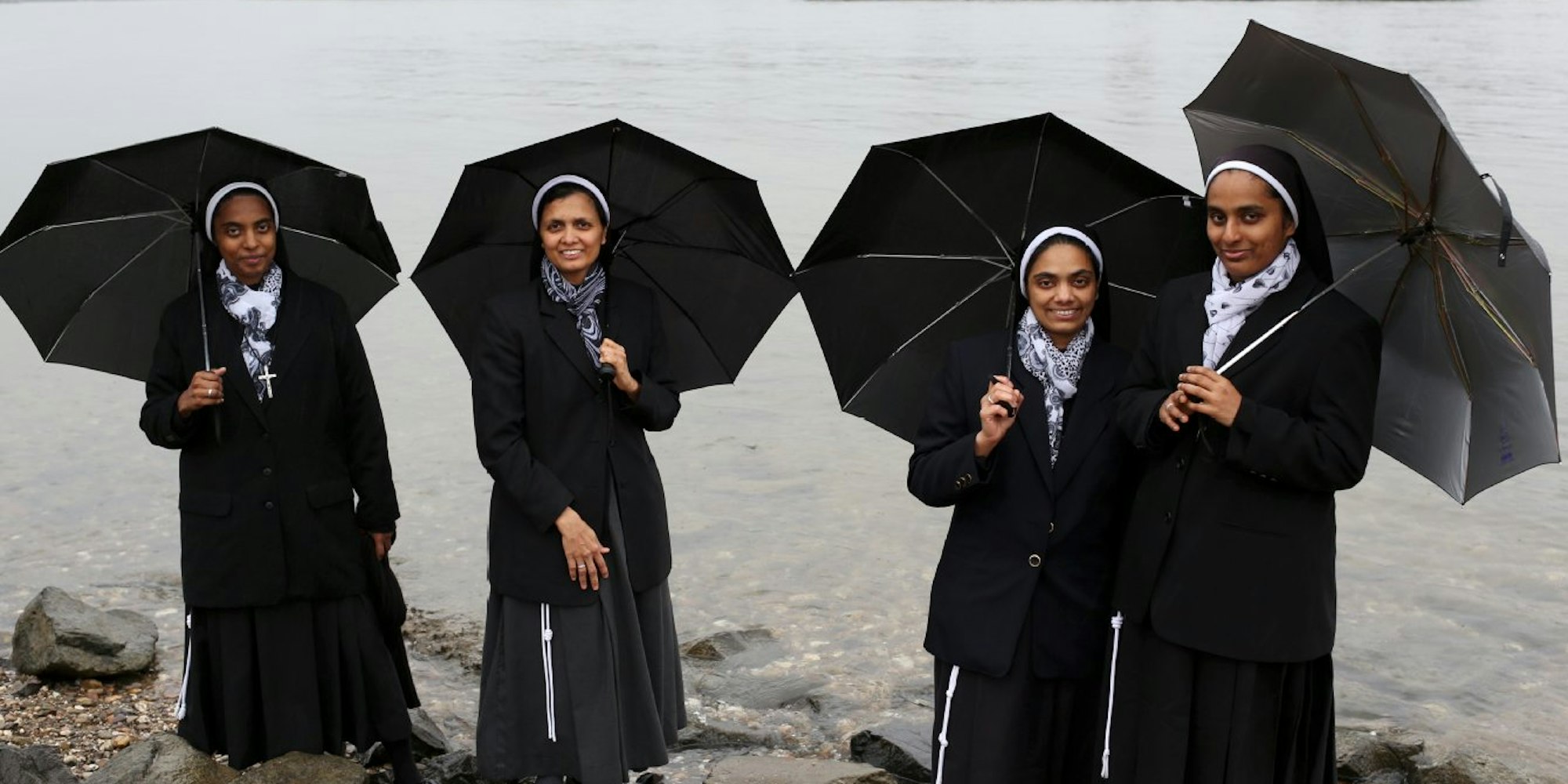 Die vier Frauen aus dem Süden Indiens sind Franziskanerinnen. Sie gehören einem der größten indischen Frauenorden an, dessen Mitglieder in vielen Ländern der Welt sozial-karitativ tätig sind. Oberin Sherin und Schwester Agnet arbeiten in der Altenpflege im Sürther Matthias-Pullem-Heim, die beiden Jüngeren befinden sich noch in der Ausbildung.