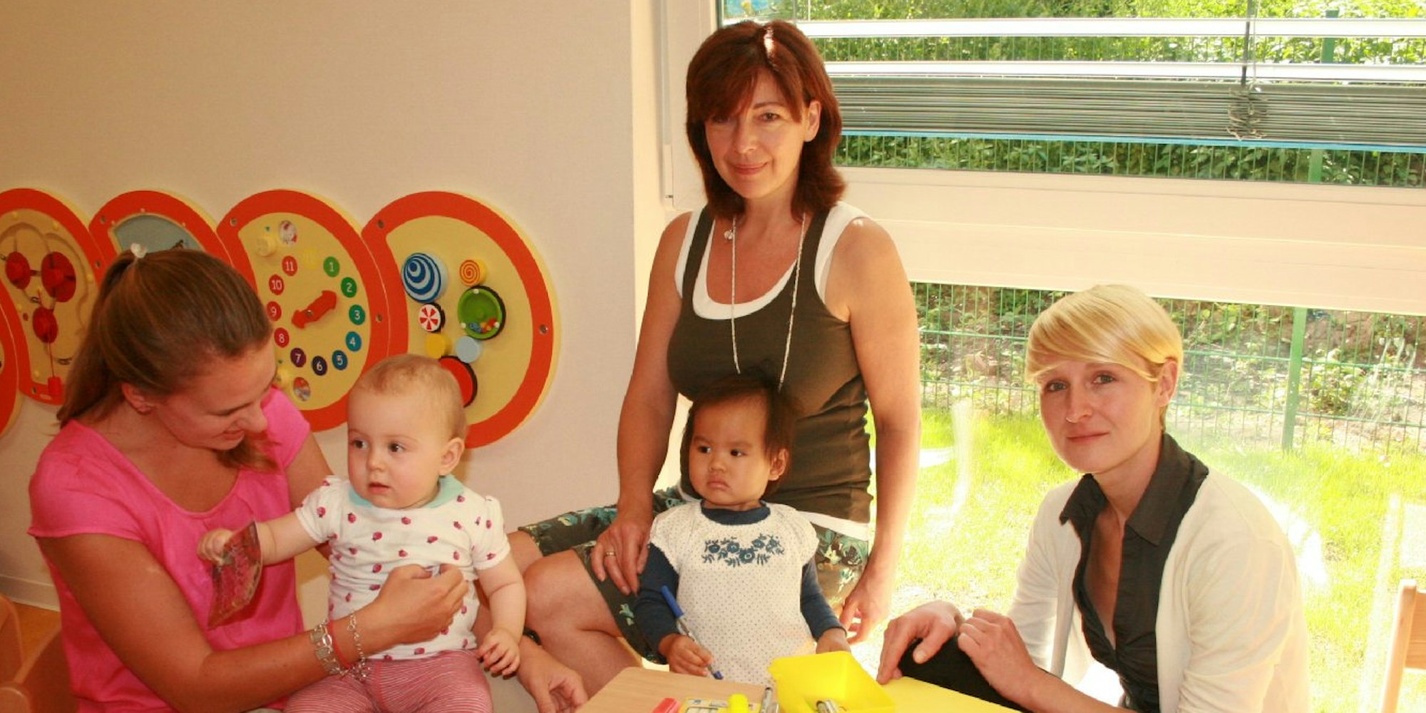 Die Gründerin der My Dagis Tagesstätte, Stefanie König (r.), mit Erzieherinnen und Kindern.