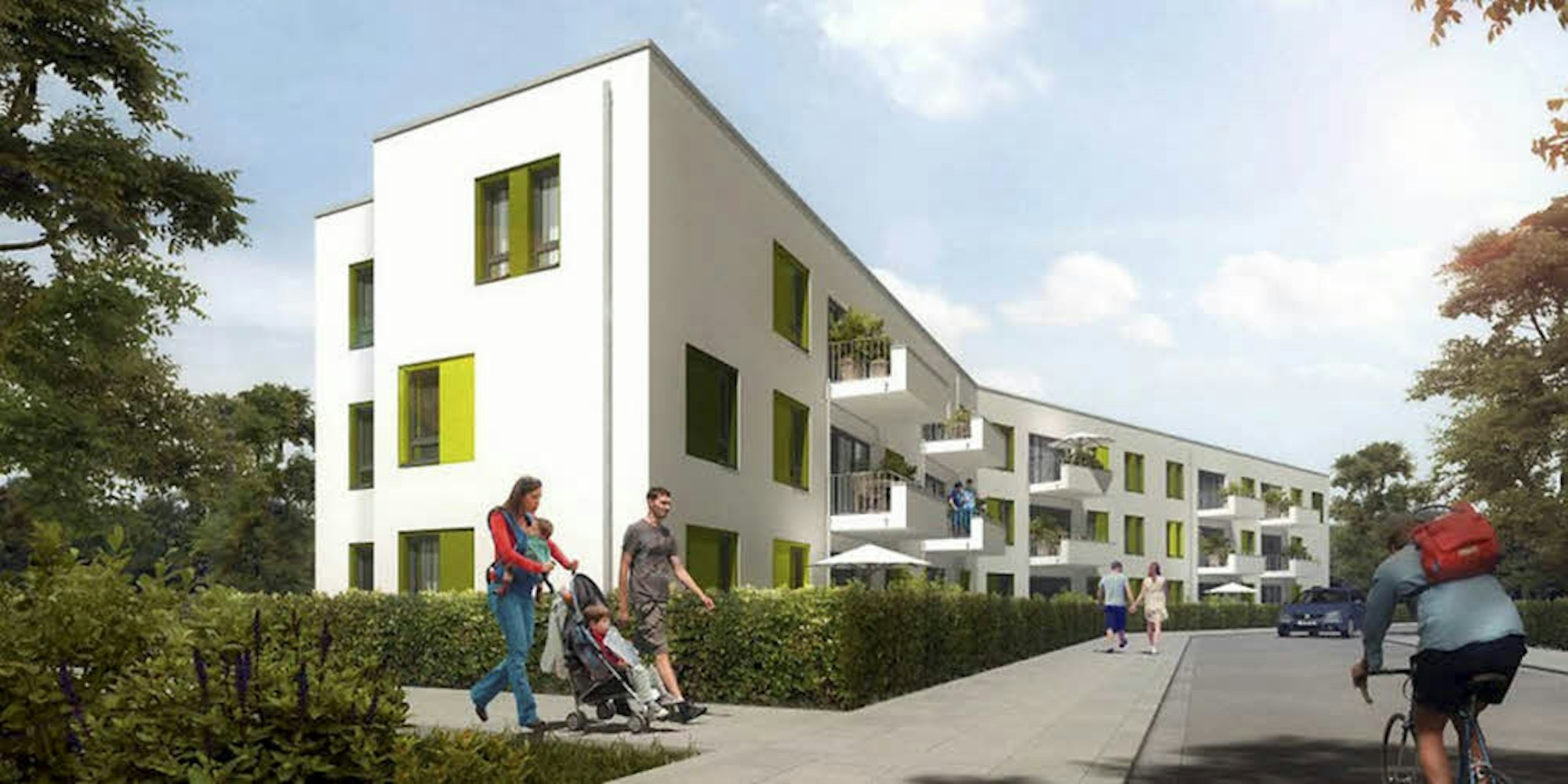 Das Mehrfamilienhaus wird auf einem städtischen Grünstreifen zwischen Josef-Kallscheuer-Straße und Industriestraße errichtet, mit einem Lärmschutzwall entlang der Industriestraße. Das Gebäude soll für 38 000 Euro eine Erstausstattung erhalten. Im Keller sind Wasch-, Trocken- und Technikräume und ein Gemeinschaftsraum vorgesehen.