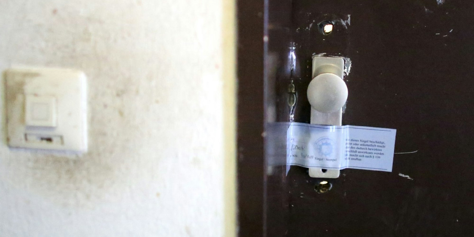 Die Wohnung, von deren Balkon die verweste Leiche heruntergeworfen worden sein soll, ist von der Polizei versiegelt worden.