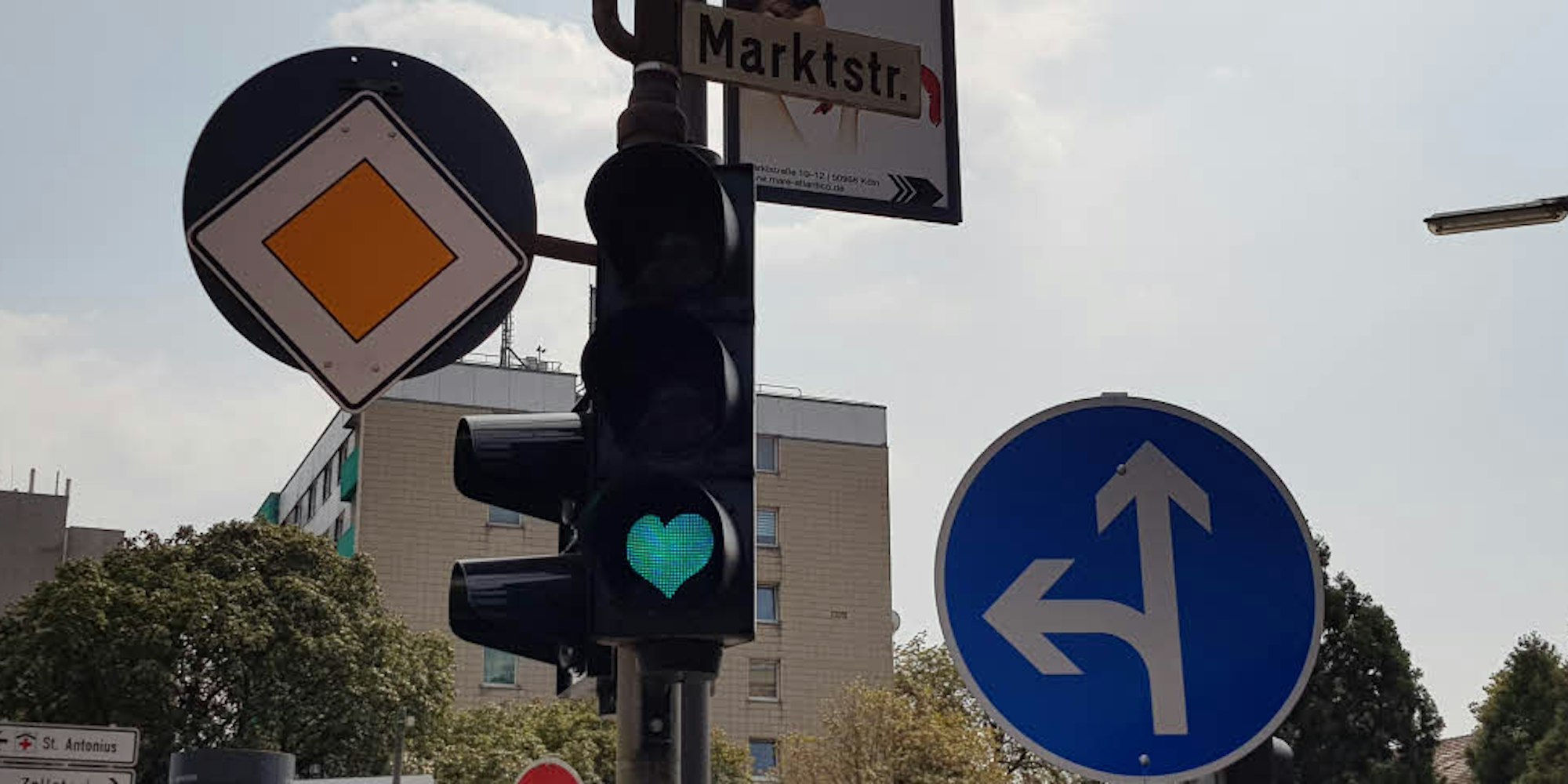 Liebe in KölnRaderberger Ampel hat ein Herz als Anzeige