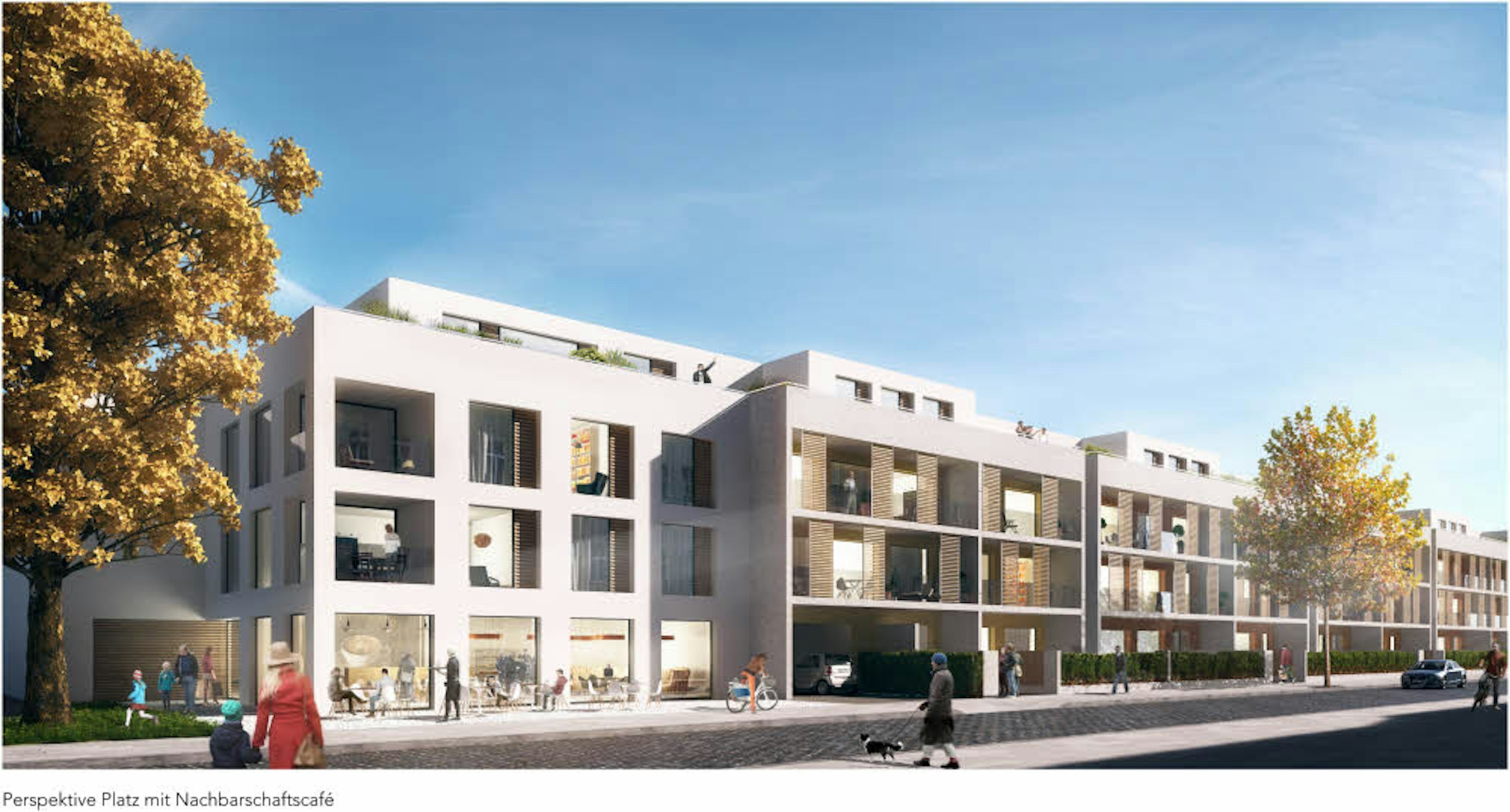 Loggien, Sonnenschutz aus Holz und ein Nachbarschaftscafé prägen die Fassade des geplanten Neubaus.