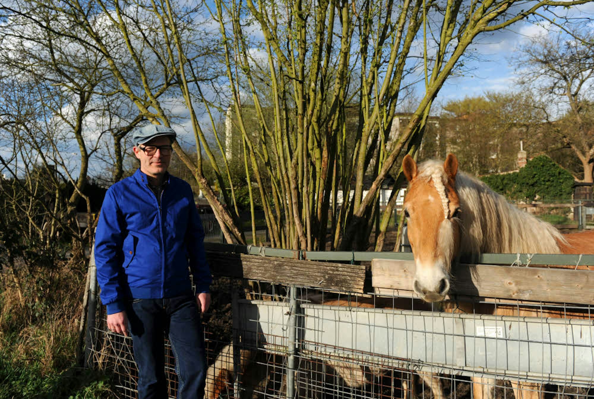 Zwischen Dorf und Großstadt fühlt sich der Sänger hier – und darum wohl. Er zeigt auf die eingeschossigen Häuser: „Im Sommer, wenn alles grün ist und überwuchert, sieht man die kaum noch.“ Wie zum Beweis der Siedlungsidylle taucht eine Pferdekoppel am Wegesrand auf.