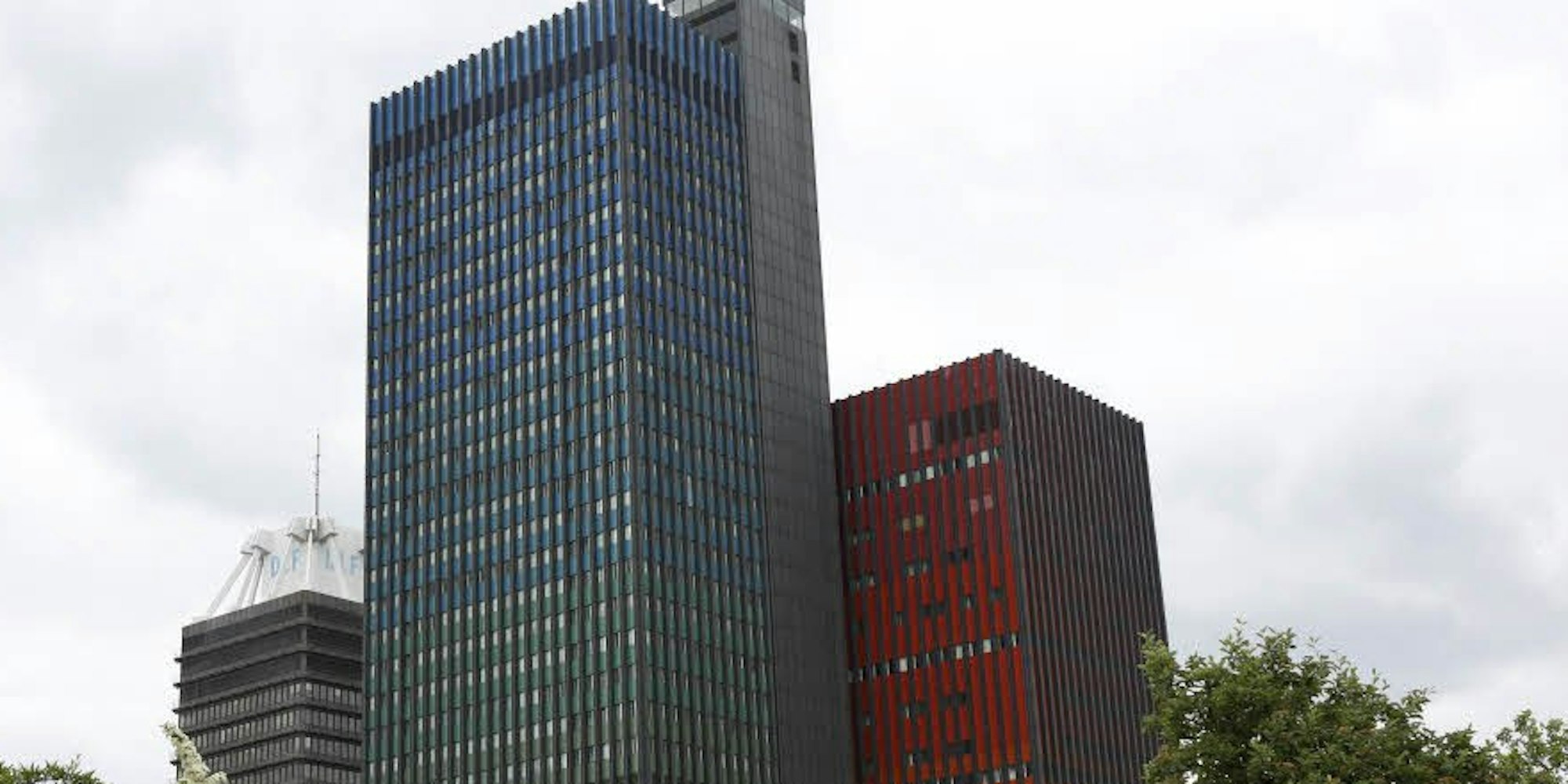 Das Welle-Hochhaus (M.) wird gesprengt, der Deutschlandradio-Turm (l.) bleibt.