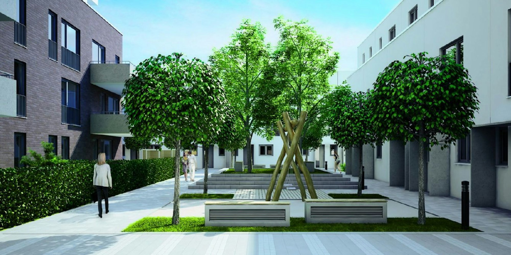 Alle Miet- und Eigentumswohnungen verfügen über Balkon oder Terrasse mit Gartenanteil. Die Stadthäuser werden zweieinhalb Geschosse hoch. Es gibt zudem elf Penthouse-Wohnungen mit 90 bis 230 Quadratmetern Wohnfläche. Von einer Tiefgarage mit 105 Stellplätzen gibt es direkte Zugänge zu den Wohnhäusern.