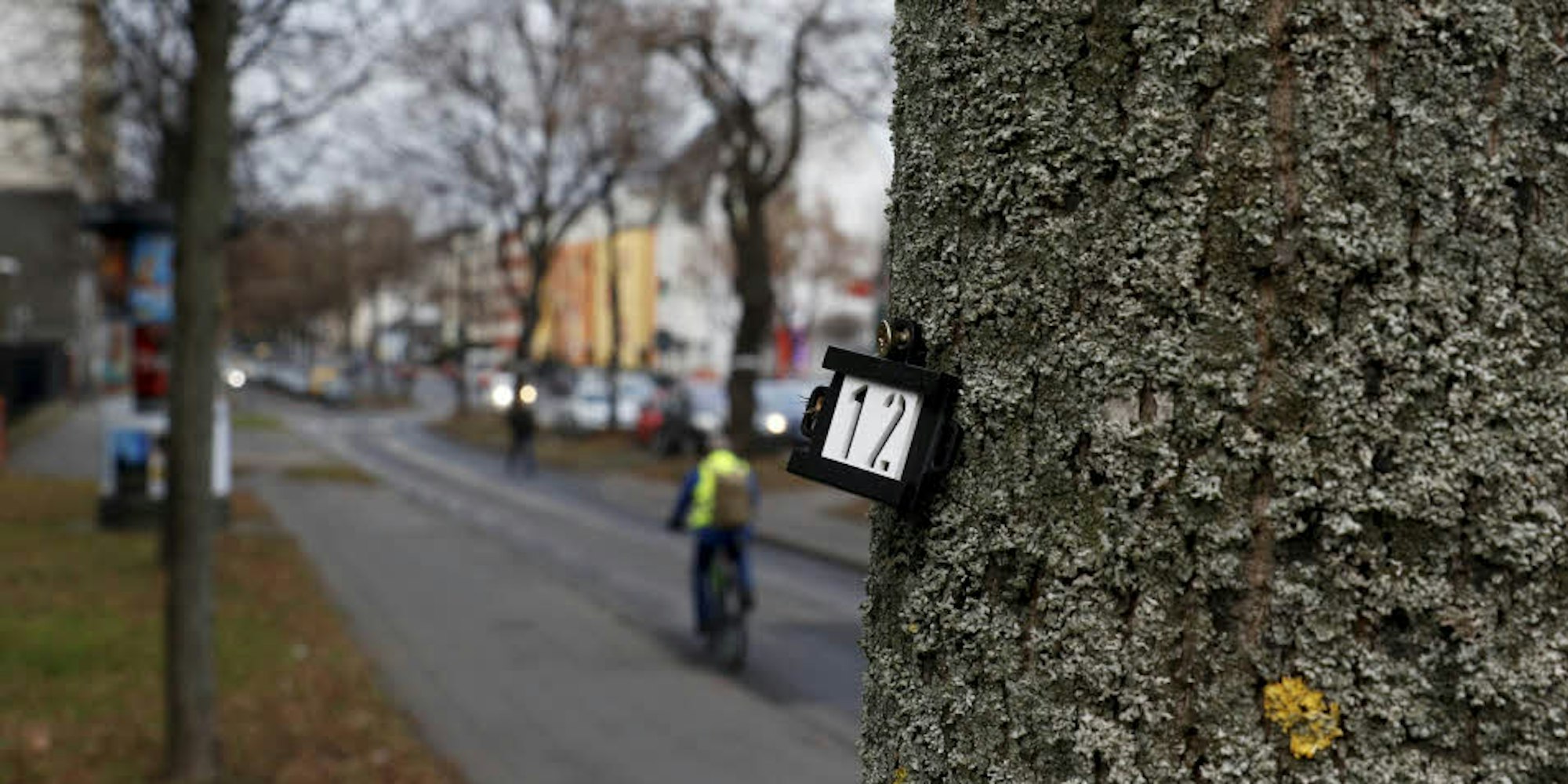 Nummern kennzeichnen die Bäume an der Bonner Straße, die versetzt werden könnten.