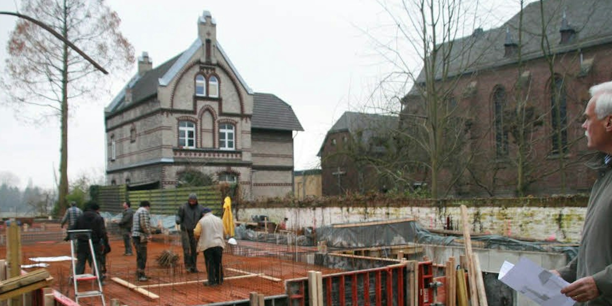 Noch ist nur die Tiefgarage des Neubaus an der Hauptstraße zu sehen. Vier Wohnungen sollen hier entstehen. Bauherr Manfred Hecker (r.) ist in dem Haus groß geworden, das ursprünglich dort stand.