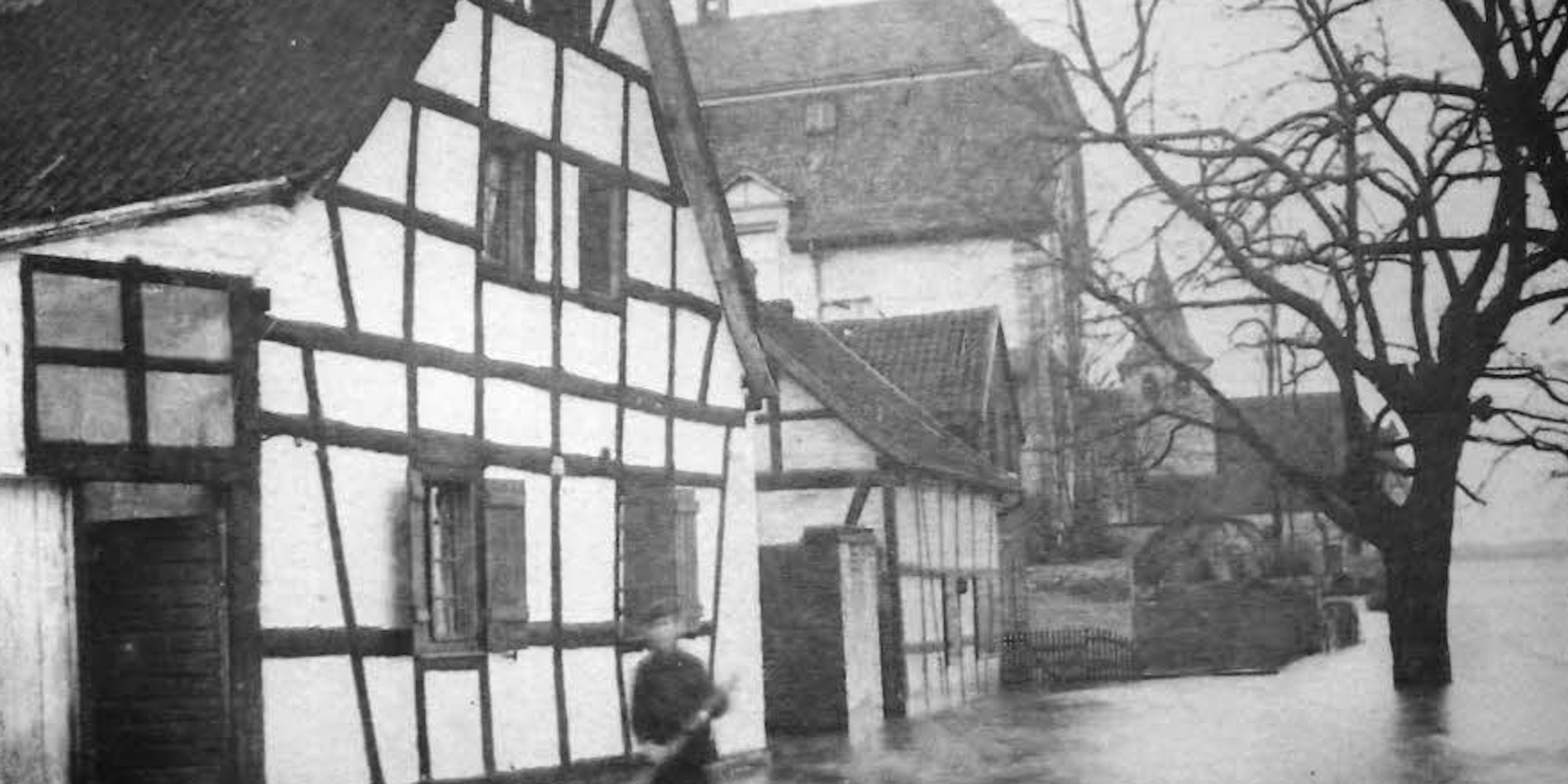 Während des Jahrhunderthochwassers 1926 war Haus Birk nur mit dem Boot zu erreichen.
