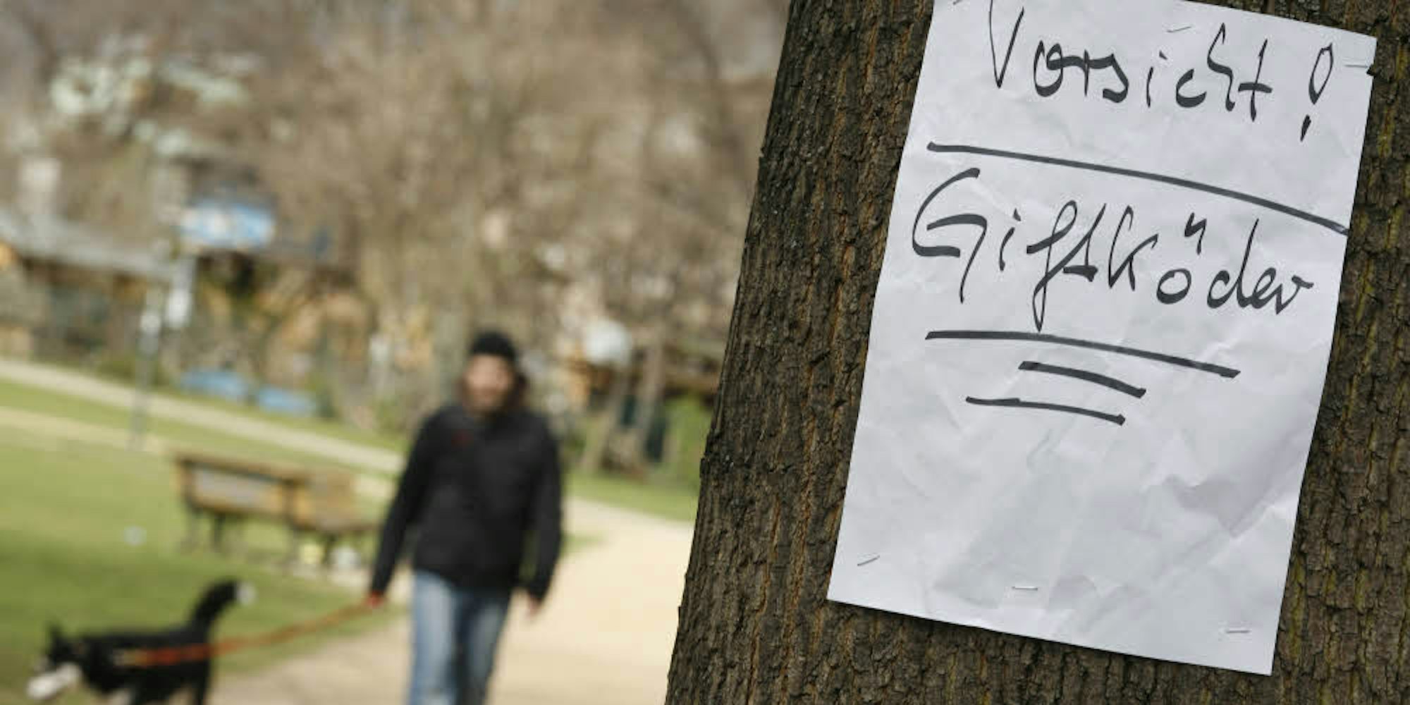 Vergiftete Fleischköder sollen dort ausgelegt worden sein. Im Weißer Rheinbogen hing kürzlich an einem Baum ein Zettel mit der Aufschrift „Giftköder-Alarm“ und „Achtung Hundebesitzer“.