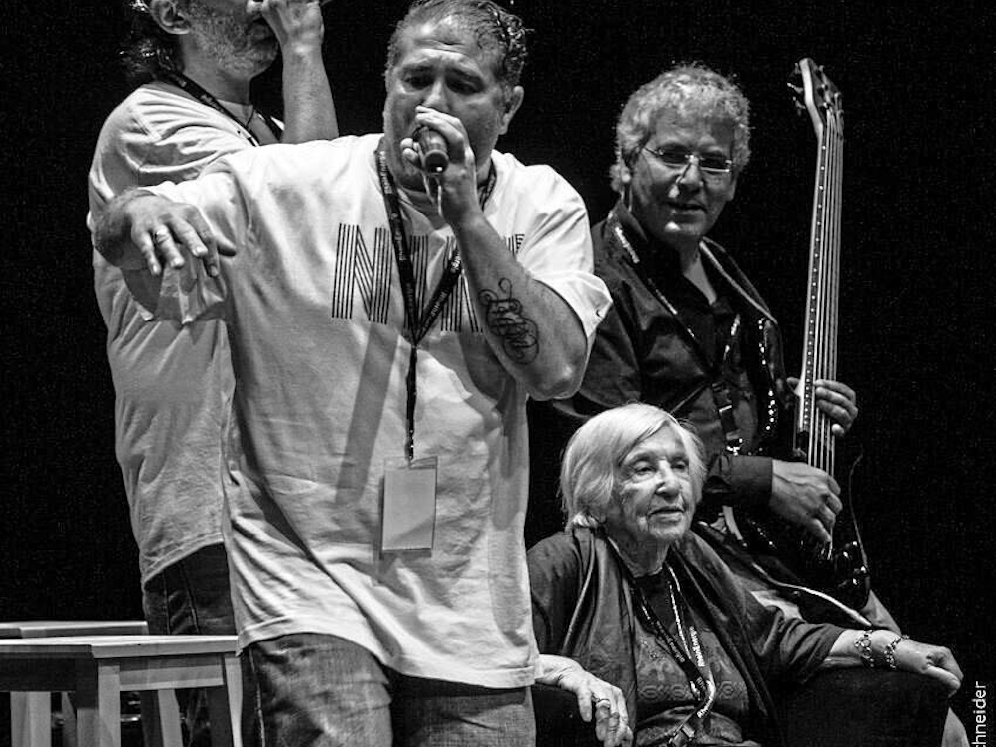 Die Microphone Mafia trat auch schon mit der 95-jährigen KZ-Überlebenden Esther Bejerano und ihrem Sohn Johann auf.