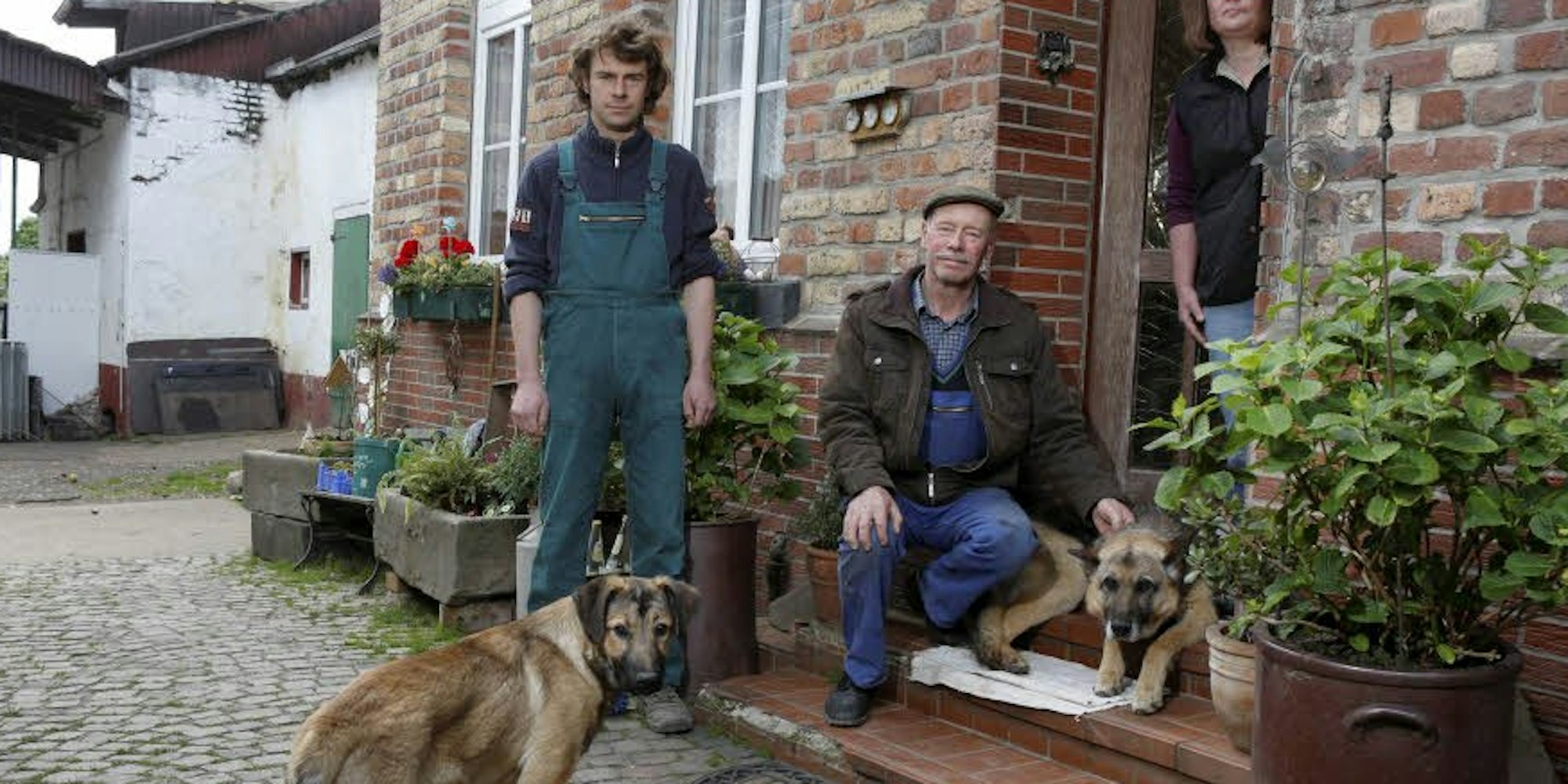 1860 wurde der Hof zum ersten mal urkundlich erwähnt. Schon zur Römerzeit war hier ein Gutshof. Im Familienbesitz ist der Betrieb seit 115 Jahren. Fast so lange grunzen Schweine hier. Heinz-Georg und Gudrun Kleinschmidt schmeißen mit ihrem Sohn Martin den Betrieb – 200 Schweine, 100 Hühner, Getreide und Gemüse auf 25 Hektar zwischen Poller Wiesen, Campingplatz, Siegburger Straße und Autobahn – ohne jeden Helfer; außer Tochter Anne-Kathrin, die Theologie studiert hat. Wenn sie nach Hause kommt, muss sie anpacken. „Bezahlte Helfer oder eine Putzfrau könnten wir uns nicht leisten“, sagen die Kleinschmidts. Sie könnten sich auch keinen neuen Traktor oder Mähdrescher anschaffen. Einer der Traktoren ist über 50, der andere 40 Jahre alt. „Wenn bei dem einen ein Teil defekt ist, bauen wir um“, sagt Martin Kleinschmidt. „Ja, das ist so“, sagt sein Vater.
