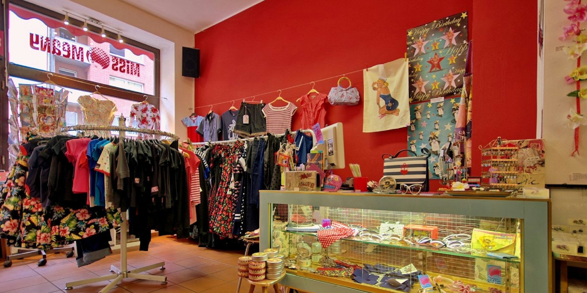 Bunte Wände, bunte Kleider aus den 50er bis 70ern: Das Miss Meany in der Südstadt.