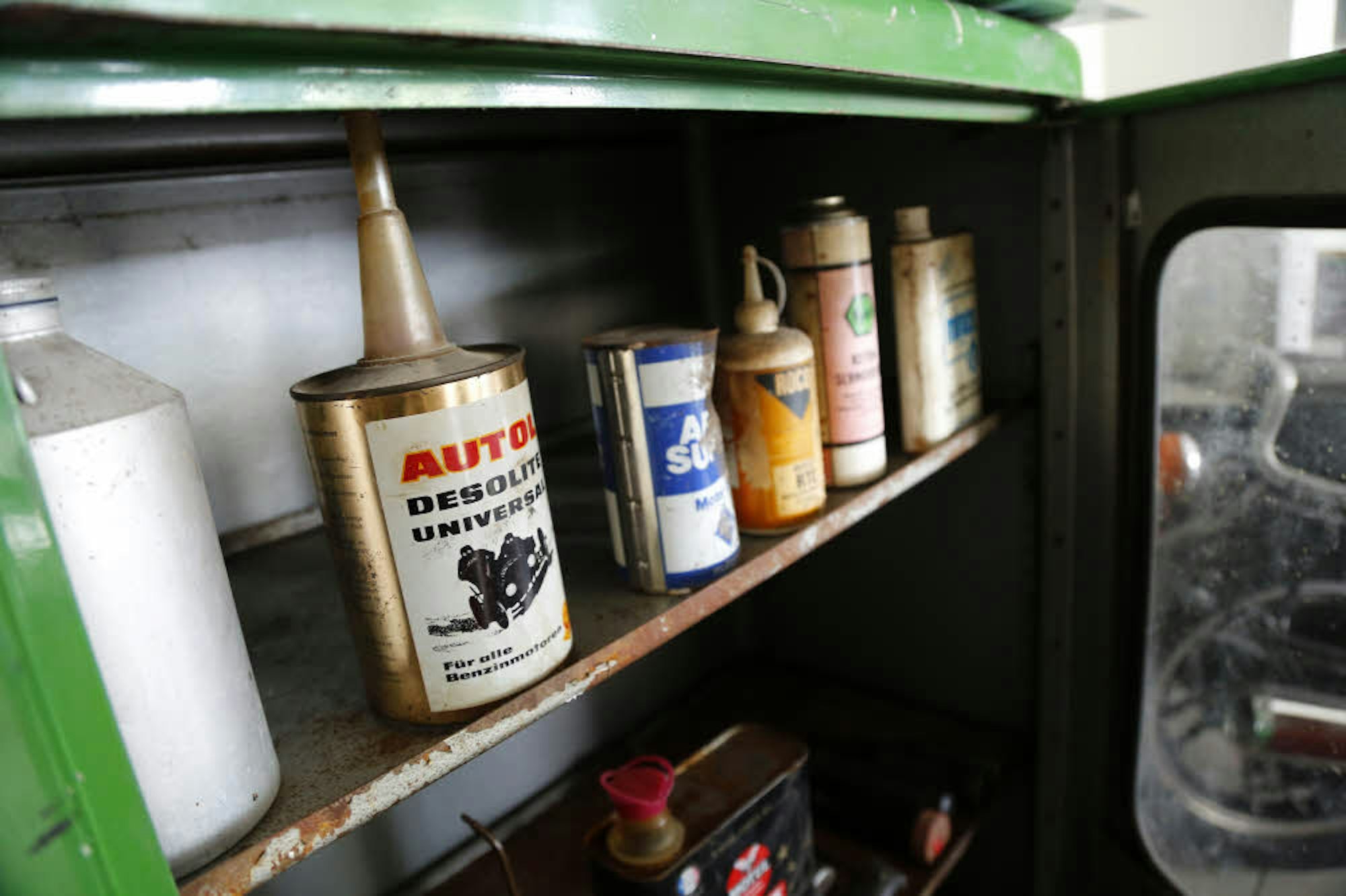 Köln-Worringen – Hinter dem Verkaufsraum, der keiner mehr ist, beginnt das Reich von Christoph Thomis-Kluth. Der Besucher geht an dem Tresen mit der 80 Jahre alten Kasse vorbei, an dem grünen Eisenschrank mit den zerbeulten Motorölkonserven, steigt ein paar Stufen hoch und steht in einem Raum, der eine Mischung ist aus Büro und Wohnzimmer.