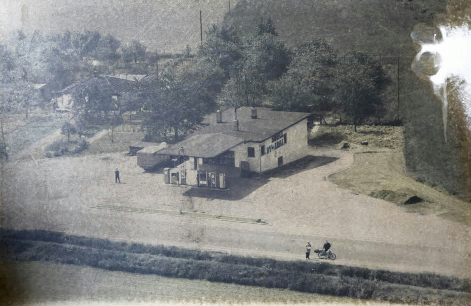 Freie Tankstelle auf freiem Feld: 1937 ließ Winand Boes an der Neusser Landstraße seinen Betrieb bauen, das Foto stammt aus den 1950ern.