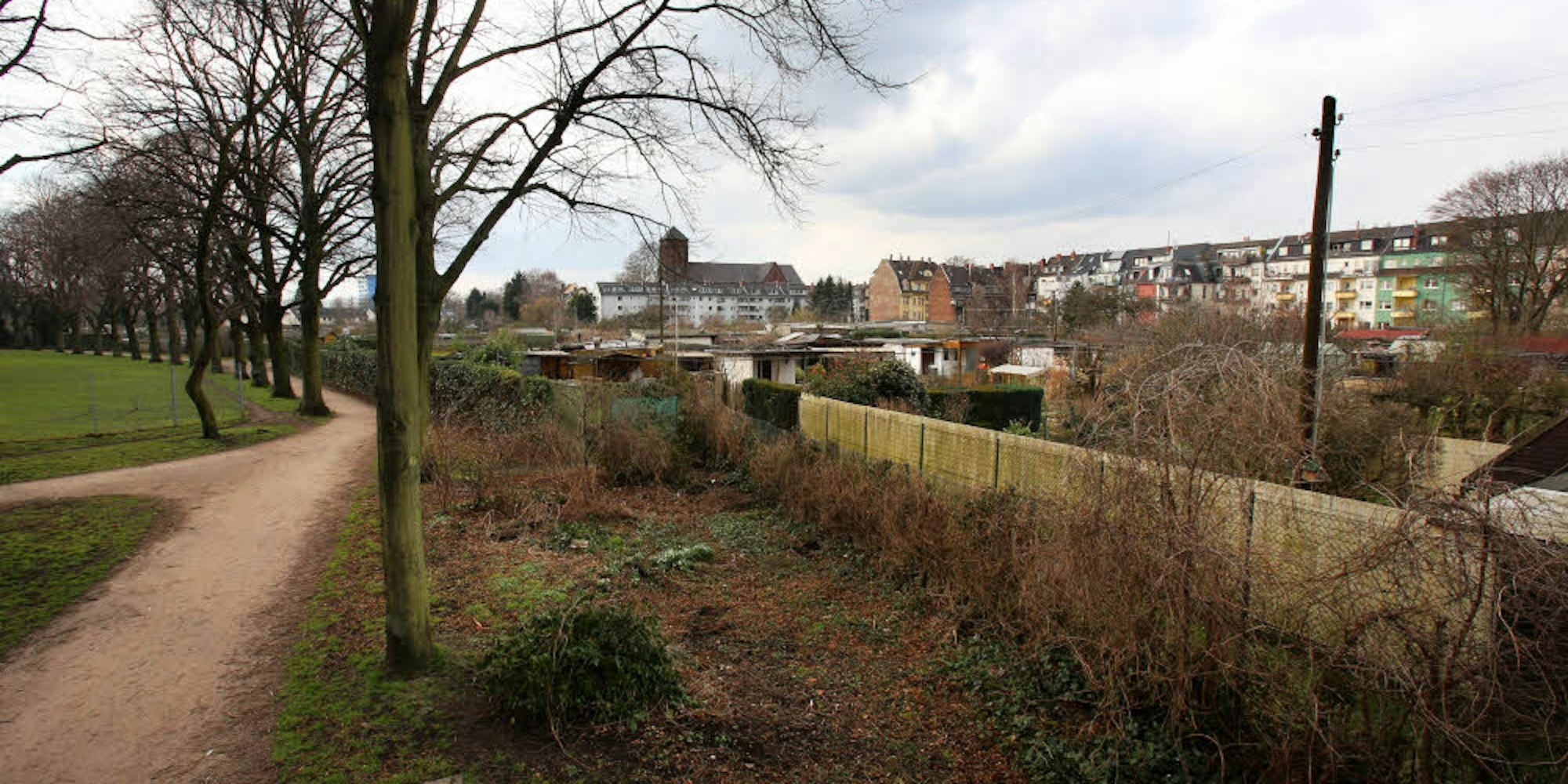 Viel Platz für neue Wohnungen in bester Lage wäre zwischen Innerer Kanalstraße und Nippeser Sechzigviertel. Doch dafür müssten einige Schrebergärten und Freiflächen aufgegeben werden. Die Rasenflächen (im Bild links) würden bleiben.