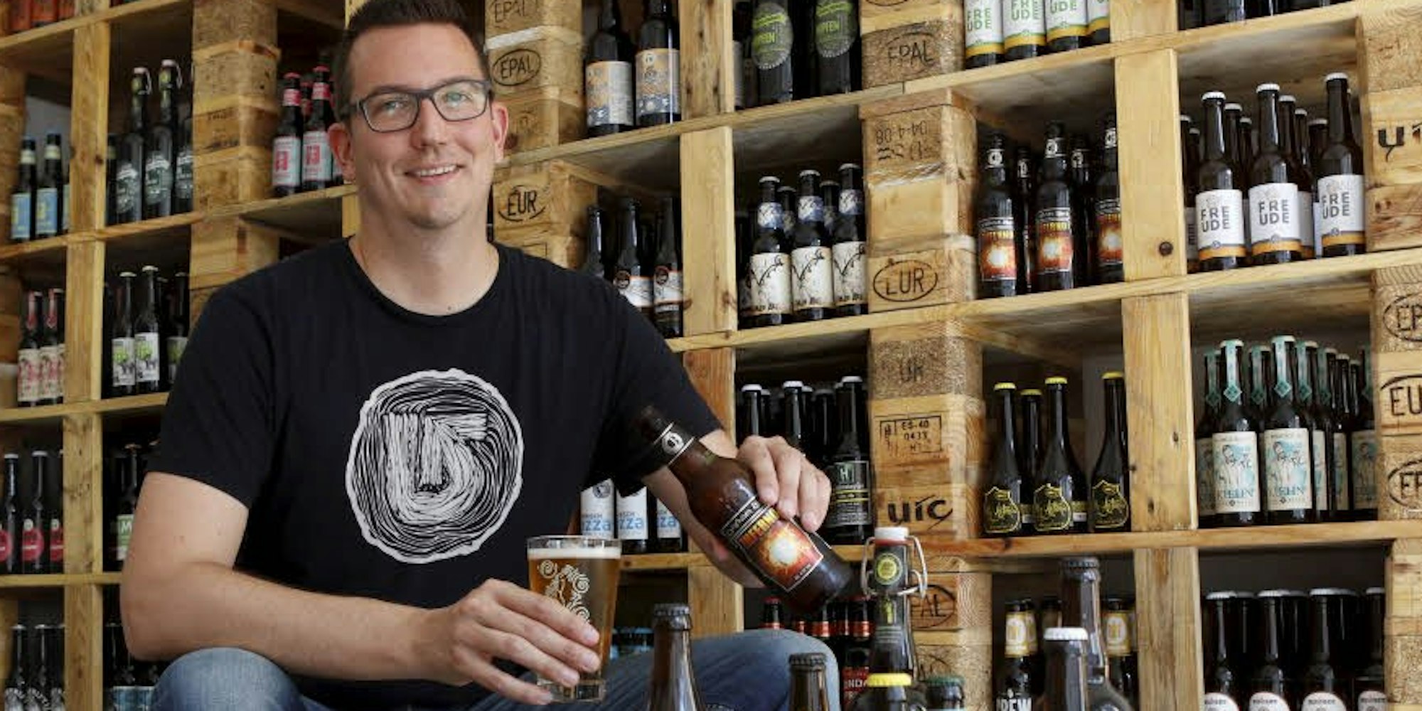 Große Auswahl kleiner Brauereien – Kai Boecker in seinem Geschäft Bierlager auf der Bonner Straße.