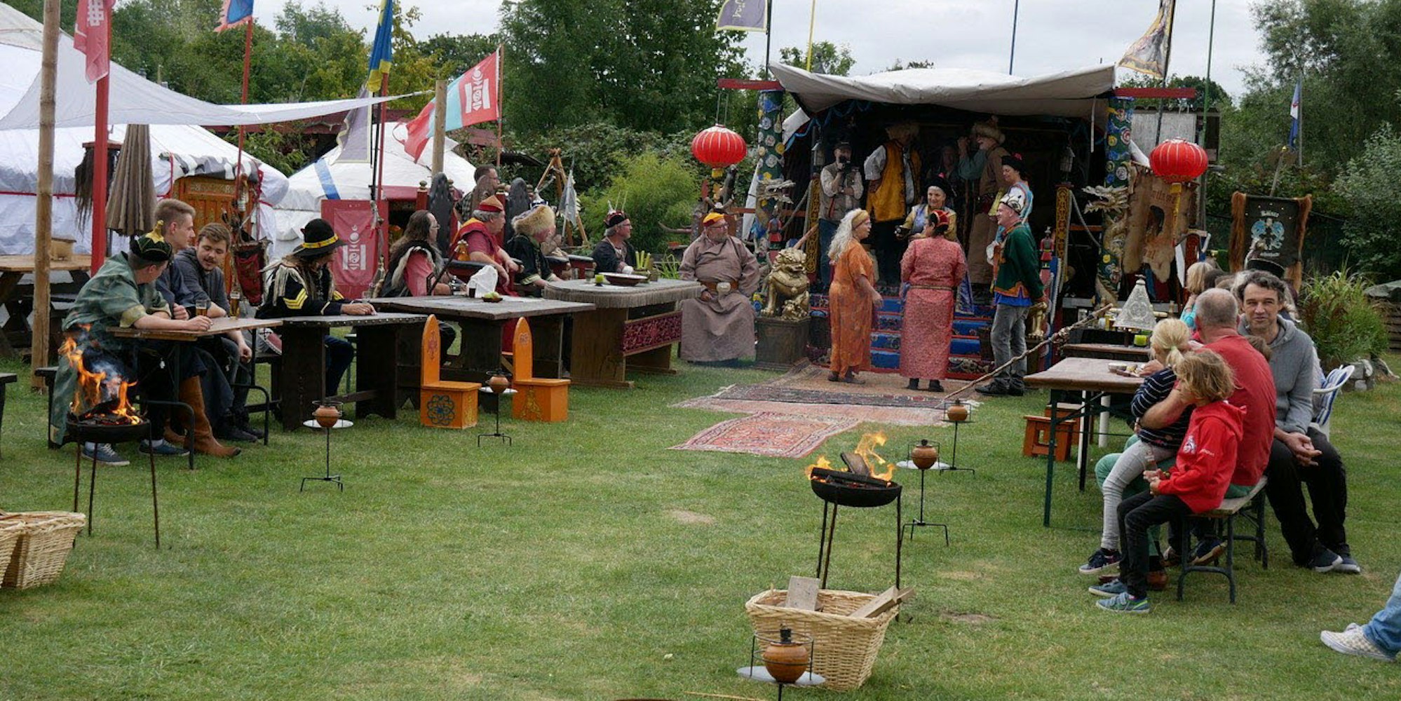 Befreundete Stämme und Vereine wie die Poller Böschräuber oder die Düsselpiraten Erkrath unterstützen die Mongolenhorde beim Sommerfest, besonders der Düsseldorf-Import scheint eng mit den Kölschen Mongolen verbunden. Harald Golsch, Kapitän der Düsselpiraten, verweist auf die gegenseitige Unterstützung während der Session, die wettbewerbsträchtige Krittelei am Bier des anderen trägt man wohl eher der Form halber aus. Schalllaballa, die Rahmkamellche und Bunt-Wiess Beckendorf bestreiten das Live-Programm, DJ Günni legt Musik auf, Feuerwerke erleuchten die Nacht. Mit der Flugshow der Hellenthaler Greifvogelstation endet das Sommerlager. Einen offiziellen Anlass brauchen die Mitglieder der 1. Kölner Mongolen-Horde allerdings kaum, um im Jurtendorf zusammenzukommen. Der „Ausgleich zum Alltag“, wie Angela Dünwald die Passion unter Gleichgesinnten beschreibt, gehört für sie längst zum Leben dazu.