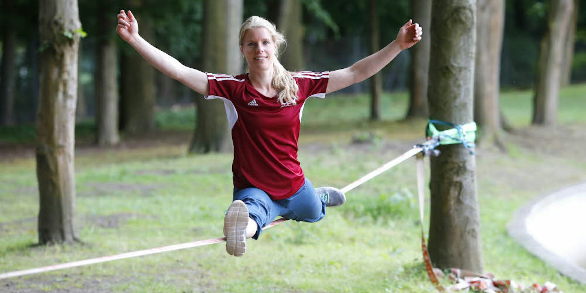 Perfekte Haltung: Slackline-Trainerin Elli Schulte.
