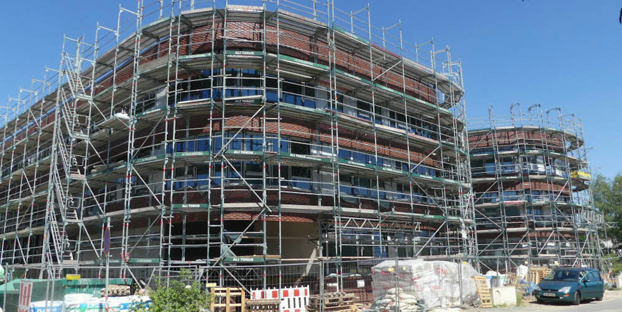 Ein Teil hat eine gebogene Form, weil die Gebäudefront zur Straße Am Wassermann hin zwei Rundungen aufweist. „Dass die Herstellerfirma dafür natürlich länger benötigt, hatten wir nicht einkalkuliert. Solange jedoch die Fensterbänke nicht eingebaut sind, müssen die Gerüste noch stehen bleiben. Deswegen sind Arbeiten an den Außenanlagen noch nicht möglich. Geplant ist unter anderem eine vertikale Grünanlage, die laut Anton Bausinger die erste dieser Art in Köln wäre.