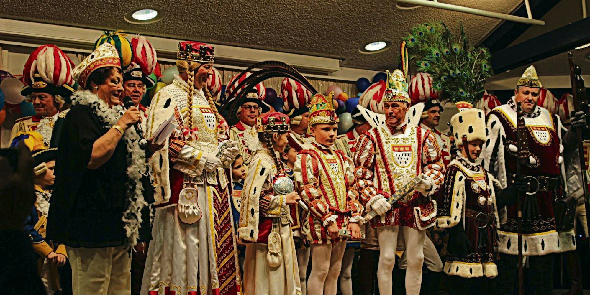 Das Kinderdreigestirn wartete da schon längst vor der Tür. Und kurzentschlossen konnten Prinz Vincent I., Bauer Emil und Jungfrau Darleen mit ihrem Gefolge in Blau-Gold zunächst alleine die Bühne betreten. Zwei Minuten später: Kommando zurück! Denn die „großen“ Kölner Regenten – Prinz Christian II., Bauer Frank und Jungfrau Griet – hatten sich dann doch endlich zu den SBK durchgekämpft; und so waren dann doch noch die großen und kleinen Regenten auf der Bühne vereint.
