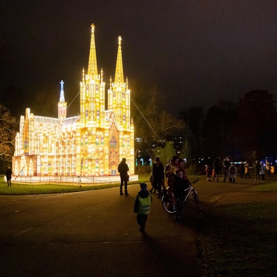 Chinesische Lichtkünstler hatten für das Fest 70 illuminierte Ensembles gefertigt. Neben asiatischen Tier- und Fantasiedarstellungen fanden sich bei der jüngsten Ausgabe auch Kölner Motive darunter, etwa ein 16 Meter hoher Nachbau des Doms oder Repliken des historischen Eingangsportals des Zoos oder die „Kletter-Lok“, die einst auf dem Spielplatz des Tierparks stand.