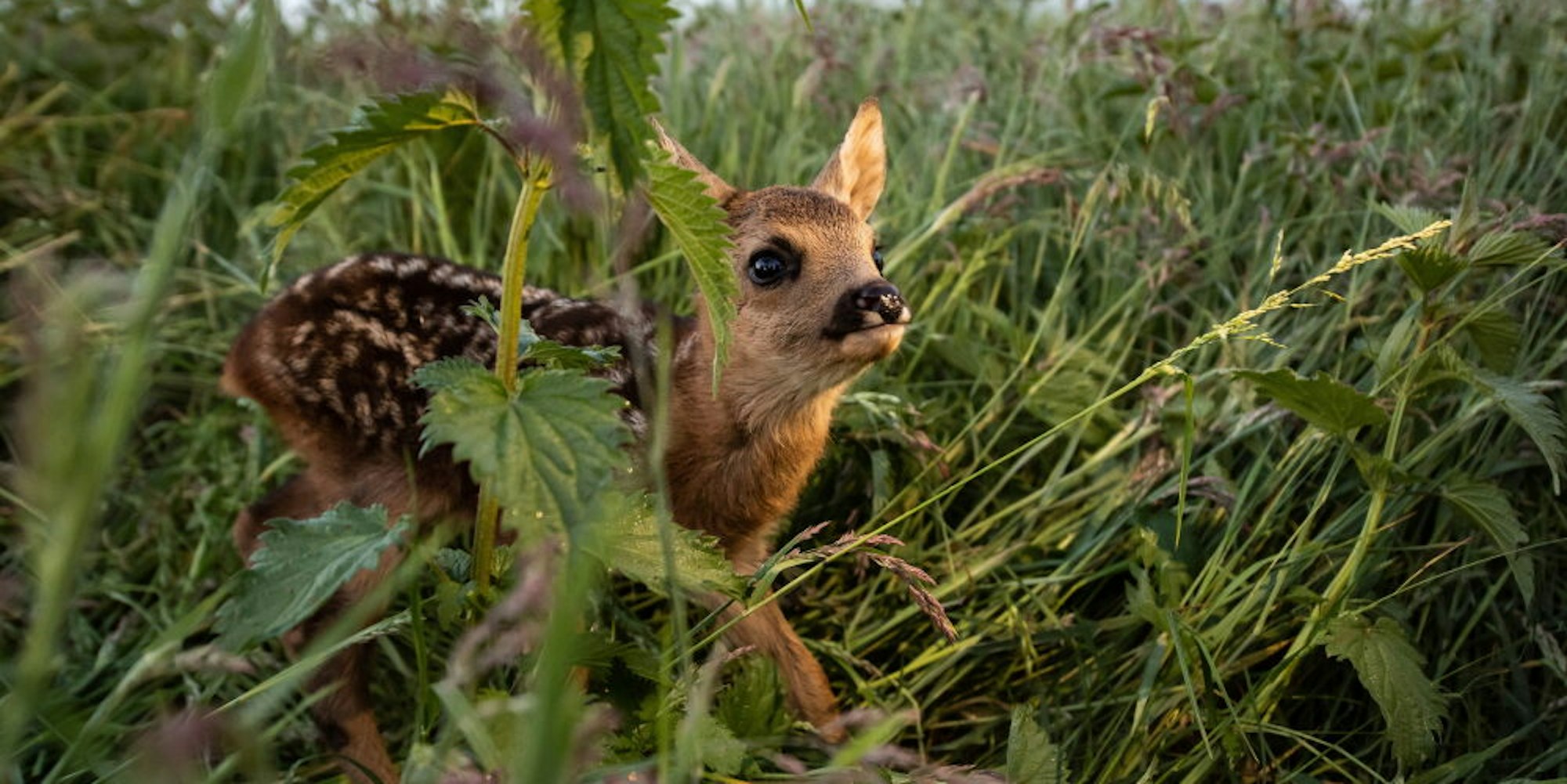 Die Rehkitze verstecken sich im April und Mai oft im hohen Gras, wo Fressfeinde sie nicht finden können.
