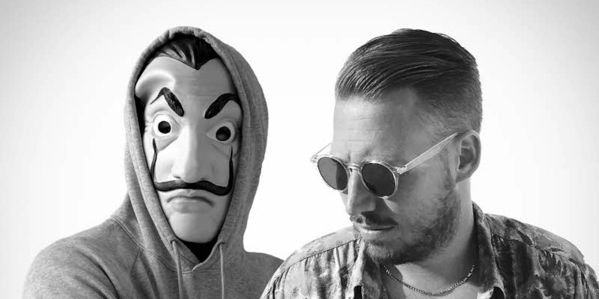 El Profesor (l), Charakter aus der Netflix-Serie „Haus des Geldes“ und Hugel (r), französischer DJ.