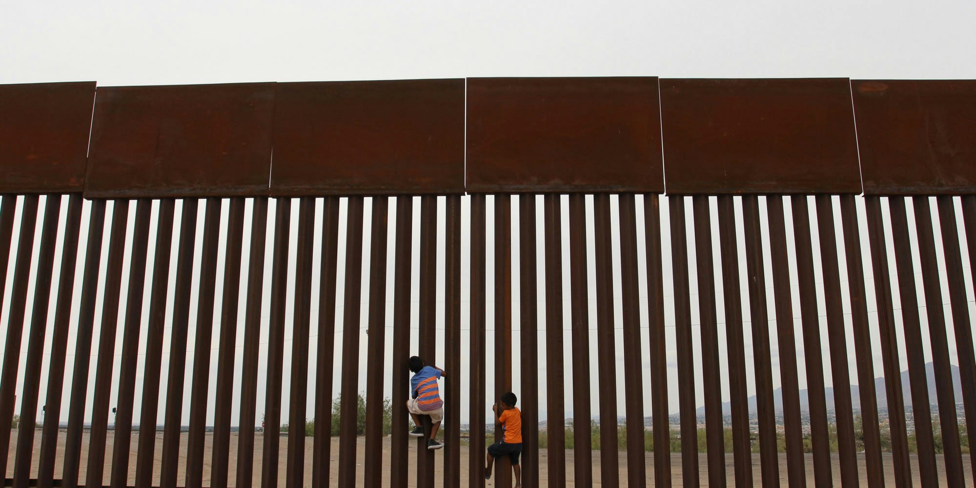 Kinder klettern an der Grenzanlage zwischen Mexiko und den Vereinigten Staaten von Amerika.