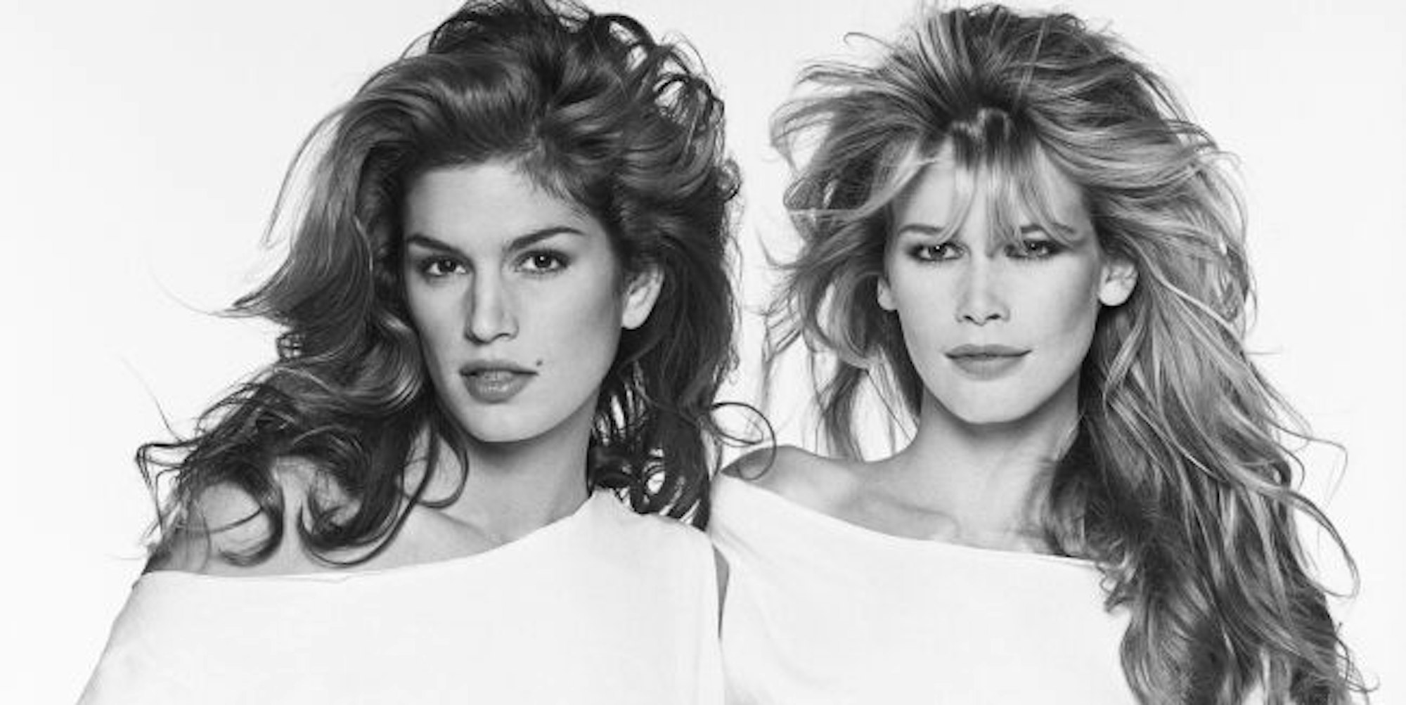 Claudia Schiffer (rechts) und Cindy Crawford posieren 1992 für Revlon