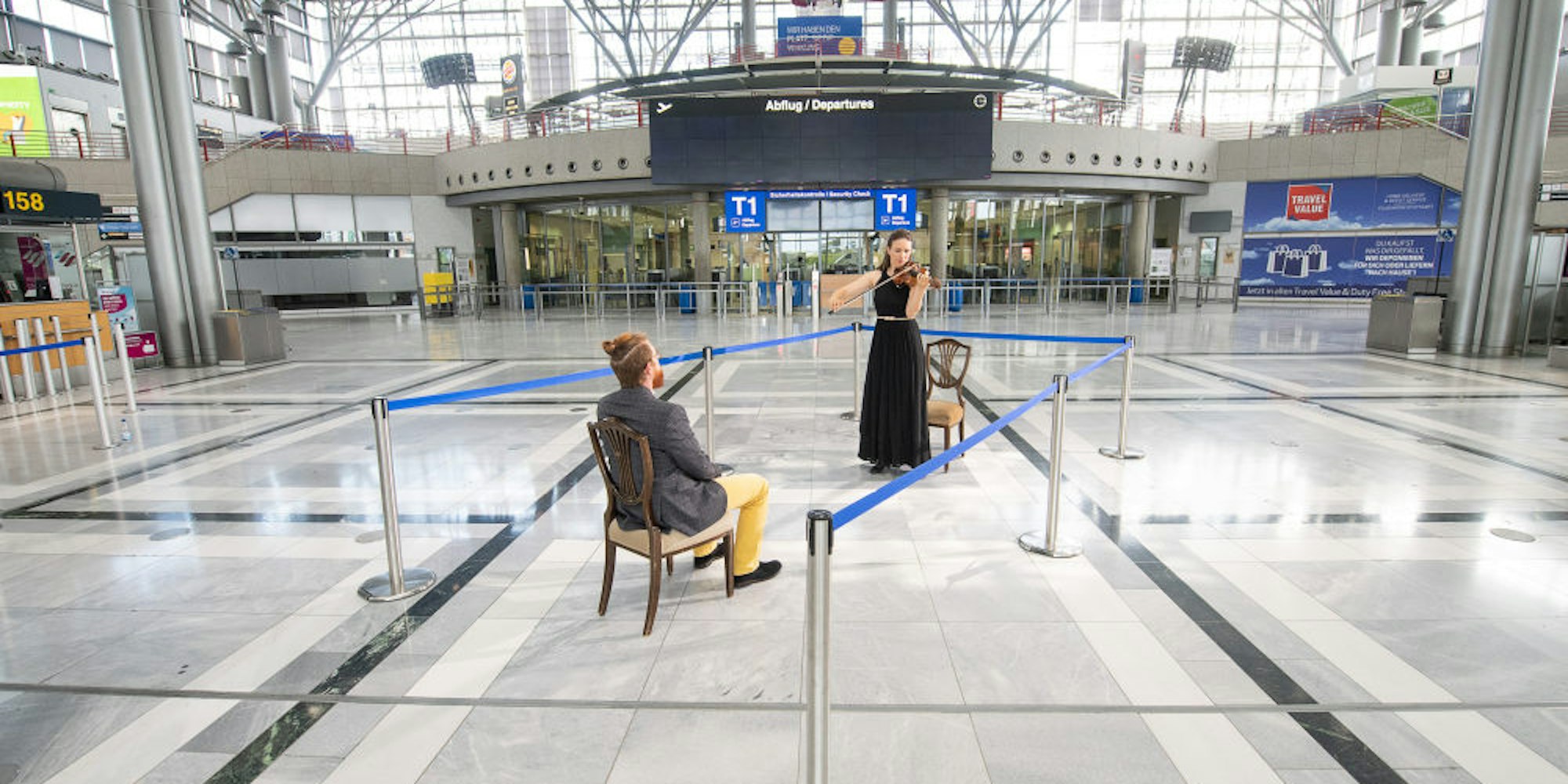 Erholung vom Corona-Stress im Stuttgarter Flughafen: Ein 1:1-Konzert – mit wohlbedachtem Abstand.