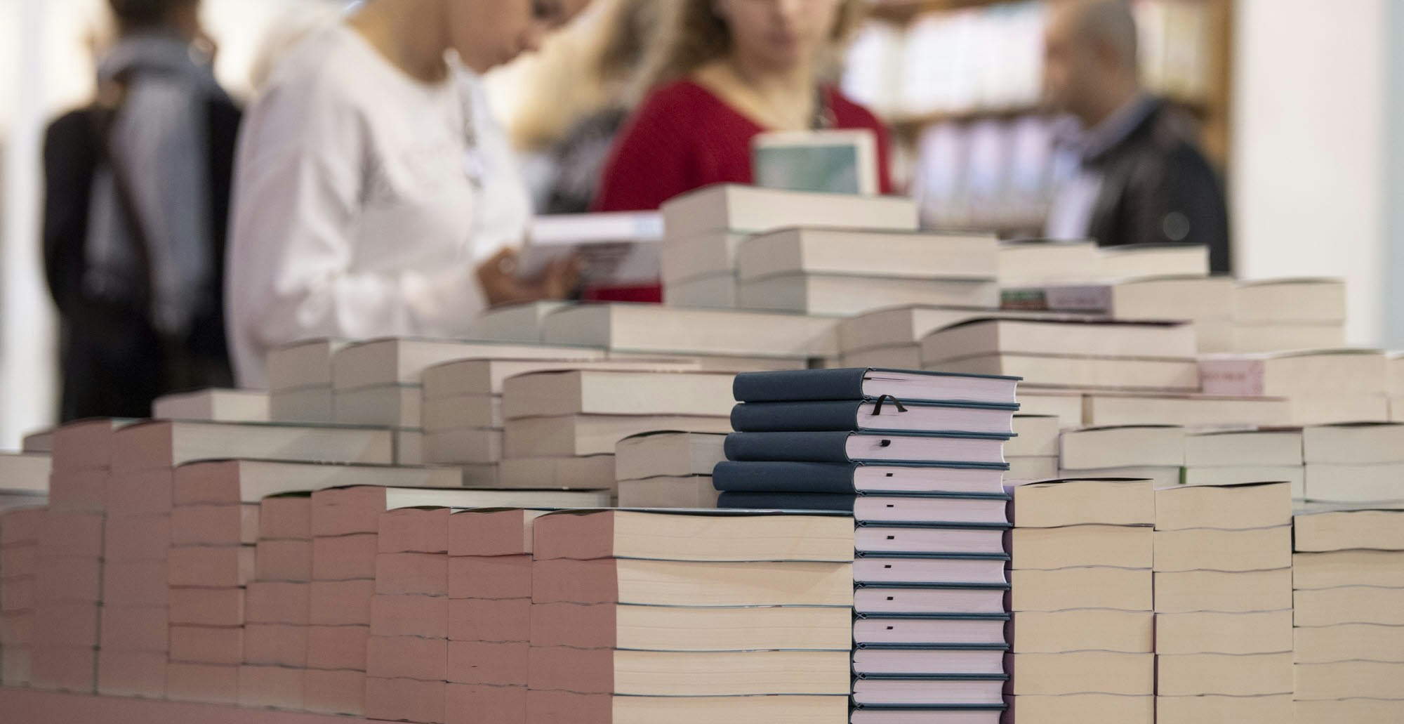 Büchertisch im Pavillon Norwegens auf der Frankfurter Buchmesse