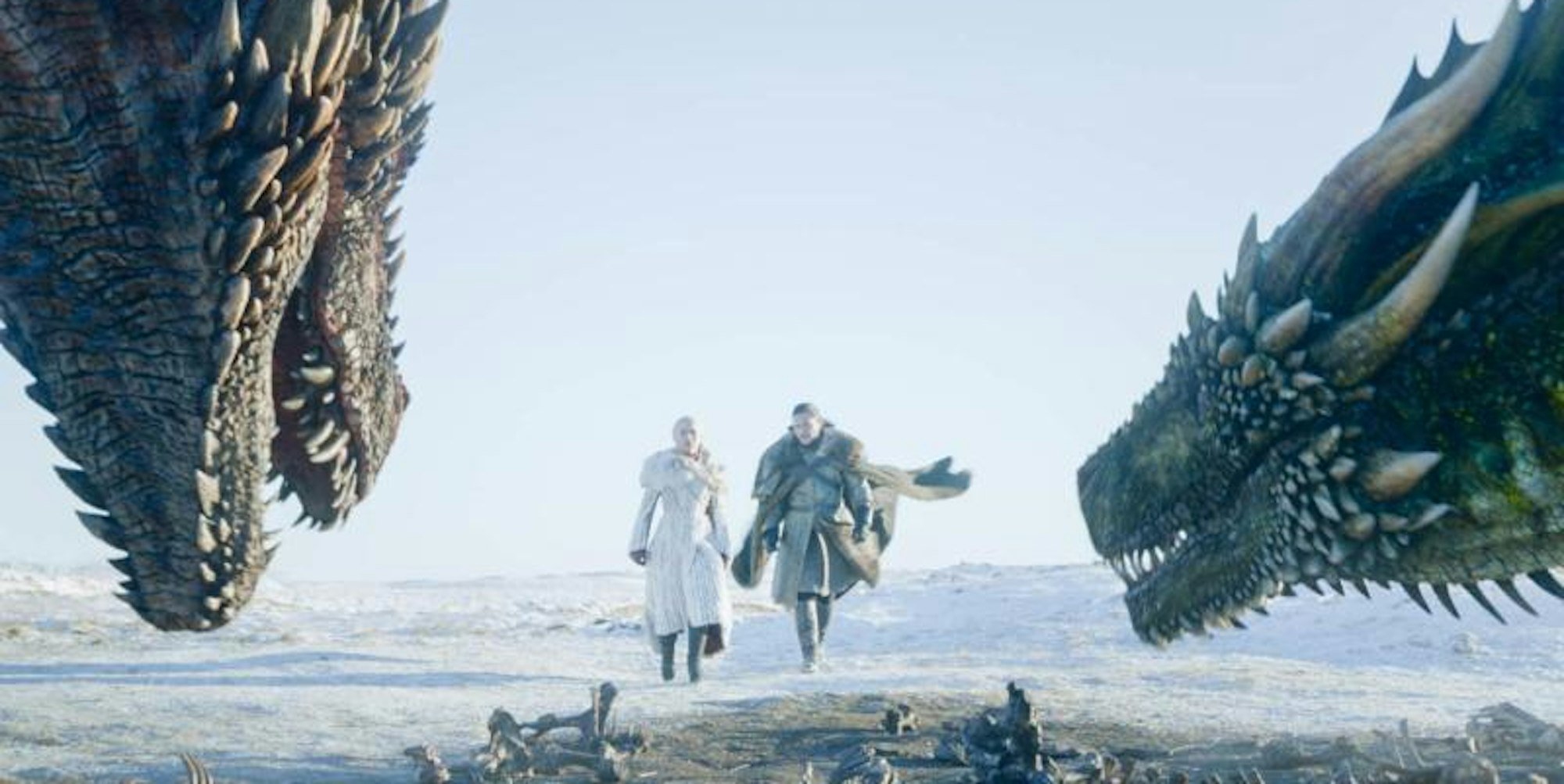 Emilia Clarke (l) und Kit Harington in einer Szene aus der letzten Episode von „Game of Thrones“.