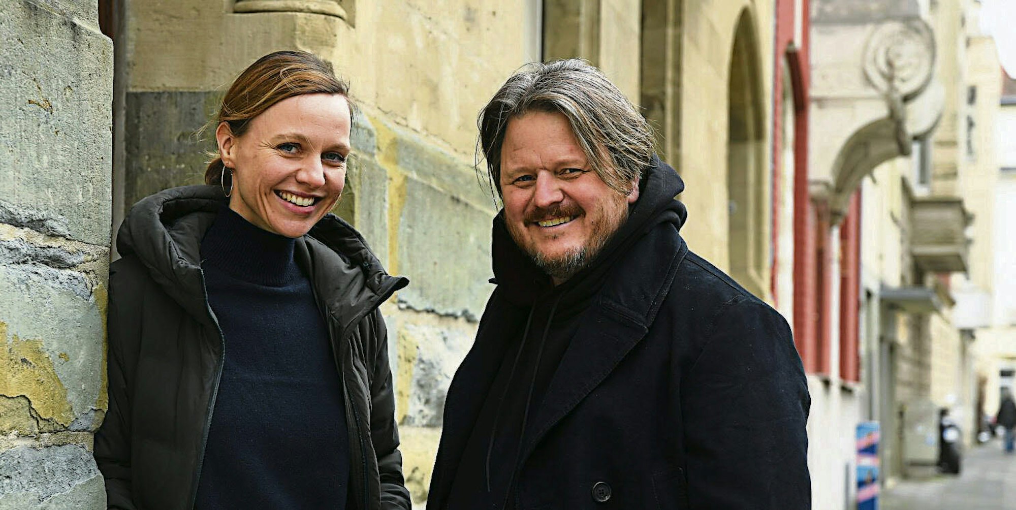 Nadja Becker und Lutz Heineking jr. in Nippes, dem Viertel, in dem ihre Serie spielt.