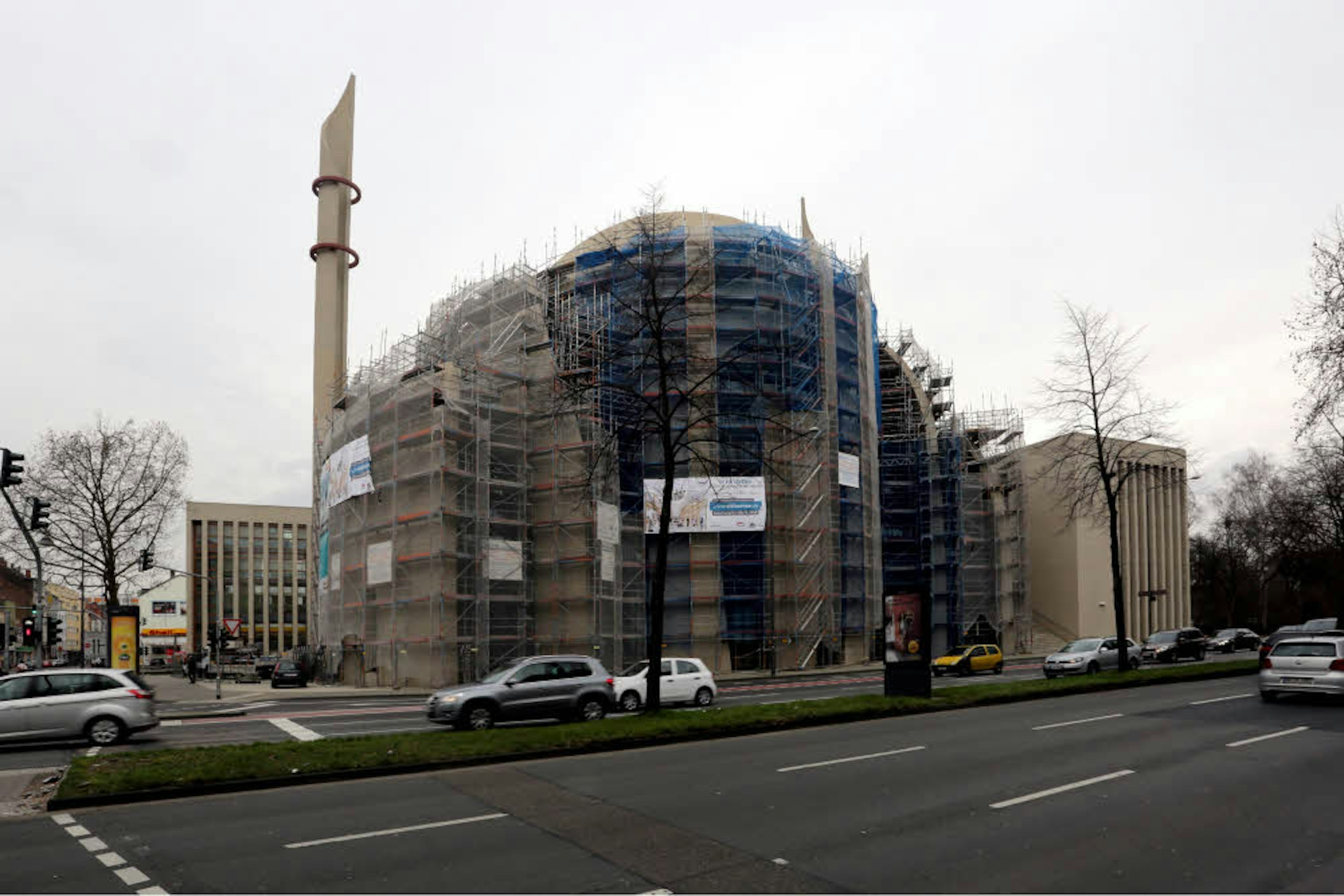 Die Zentralmoschee in Ehrenfeld wird noch immer von einem Baugerüst verdeckt.
