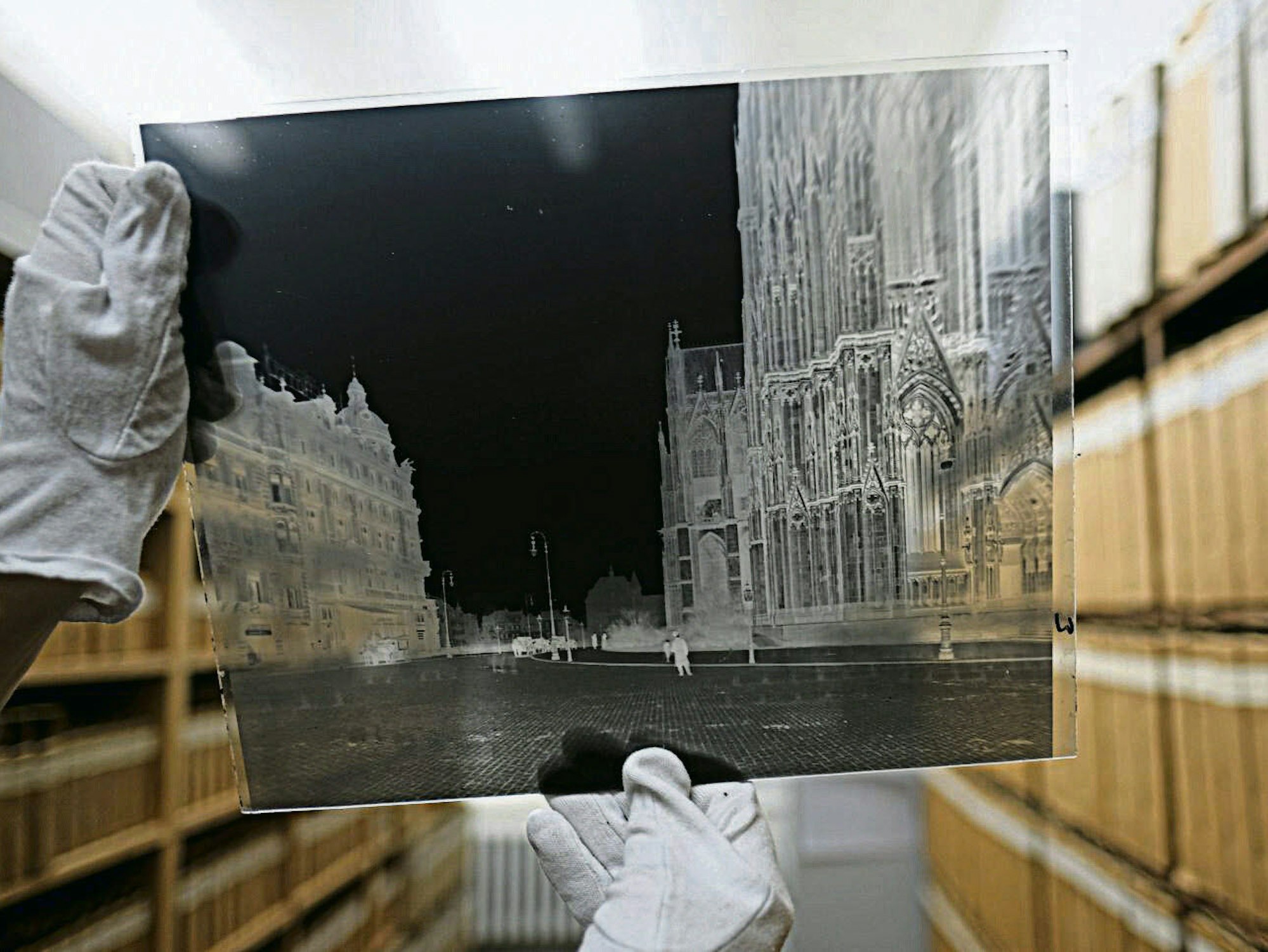 In diesen Kartons lagern zwar nicht die zahlreichen Nachlässe bedeutender Kölner Fotografen – allein von Chargesheimer (1924-1971) besitzt das 1926 gegründete Archiv 40 000 Negative. Aber immerhin die Aufnahmen der stetig wachsenden Sammlungsbestände der städtischen Museen sowie der Fundus des Kölner Stadtkonservators. Ohne dessen Fotografien des historischen Stadtbilds wäre es nach dem Zweiten Weltkrieg wohl nicht möglich gewesen, die zerstörten romanischen Kirchen und andere Baudenkmäler so vortrefflich zu restaurieren.