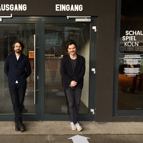 Köln – Es geschieht, was geschehen muss, wenn sich das Theater aus seinen eigenen vier Wänden wagt: Alexander Angeletta und Benjamin Höppner streiten sich vor dem grasbewachsenen Hügel des Carlsgartens.