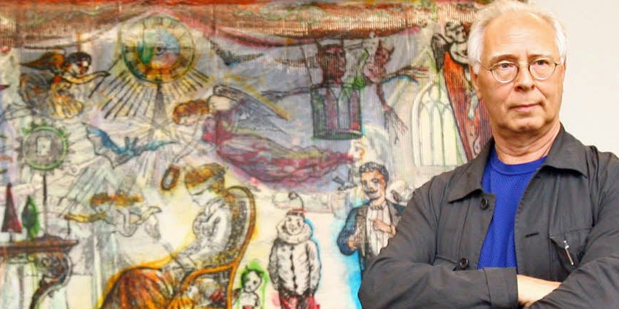 Sigmar Polke 2005 in Zürich vor einem unzweifelhaftem Original