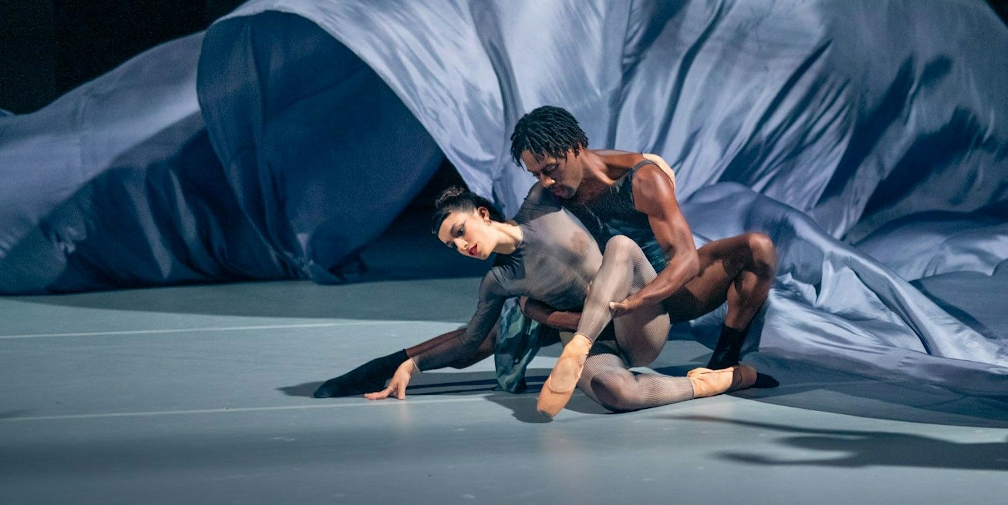 Kaum geht es los, scheint die Temperatur im Saal gleich um ein paar Grad zu sinken. Ein kalter Sturmwind bläst auf der Bühne und bringt einen taubenblauen Vorhang zum Tanzen. Der glänzende Stoff begrenzt als Halbrund die Bühnenrückseite und verfolgt seine ganz eigene Choreografie. Er flattert, bäumt sich gewaltig hoch, züngelt und lodert oder fließt wie Wasser über den Bühnenboden - nur Peter Pabst, der Bühnenbildner von Pina Bausch, hat solche Stoff-Verwehungen schon mal ähnlich famos hingekriegt wie jetzt Richards Siegal mit seinem selbst entworfenen Setting.