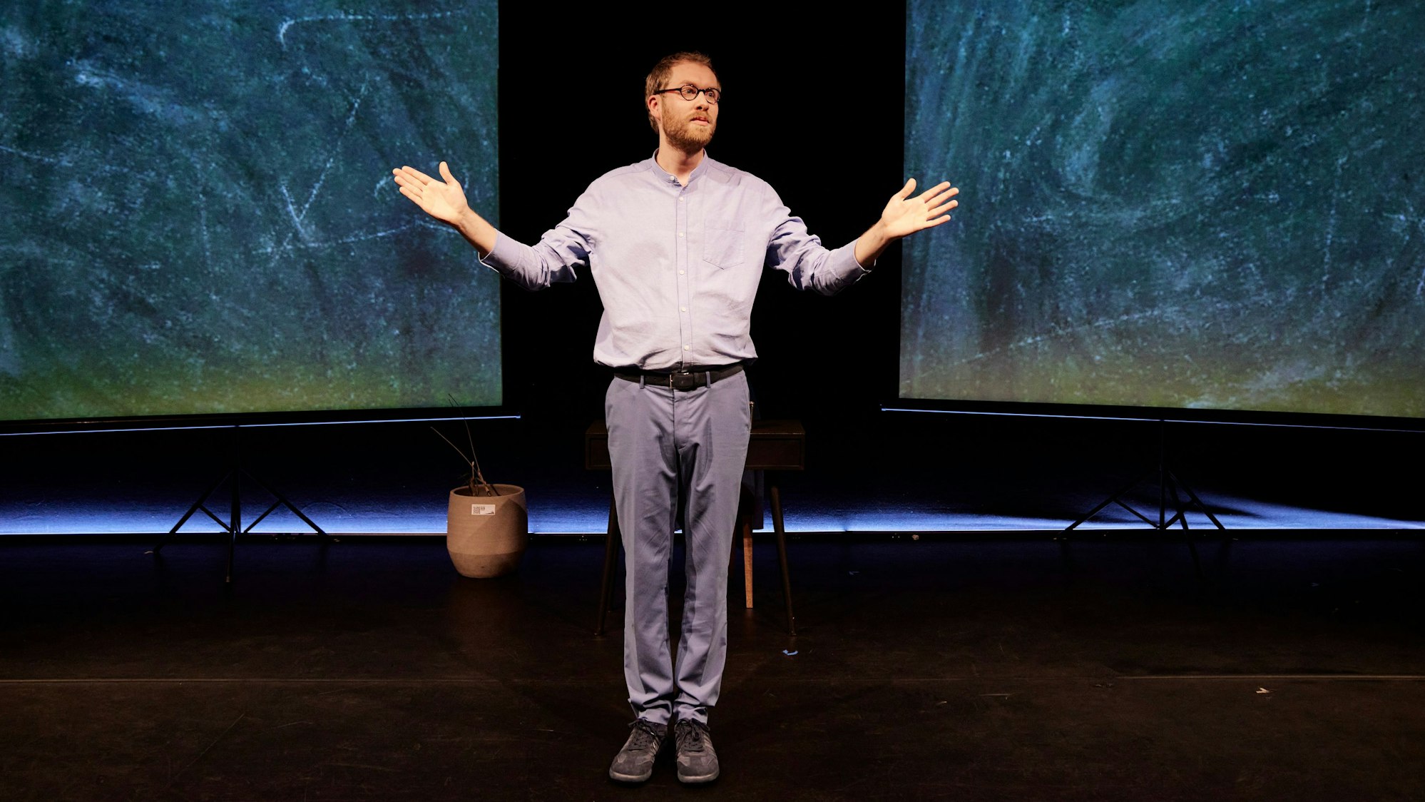 Ein Regiestudium hat Voges nie absolviert. Stattdessen hat er sich von der Büro-Kaffeemaschine aus hochgearbeitet, erst am Theater Krefeld, dann in Oberhausen, dann als freier Regisseur an kleinen, bald auch größeren Häusern, schließlich als Intendant in Dortmund, wo er das Publikum mit manchmal sperrigen, oft radikal digitalen Arbeiten schockierte – und für sich gewann. Seine rahmensprengende Inszenierung „Die Borderline Prozession“ wurde zum Berliner Theatertreffen eingeladen, plötzlich galt er als innovativster Intendant des Landes.