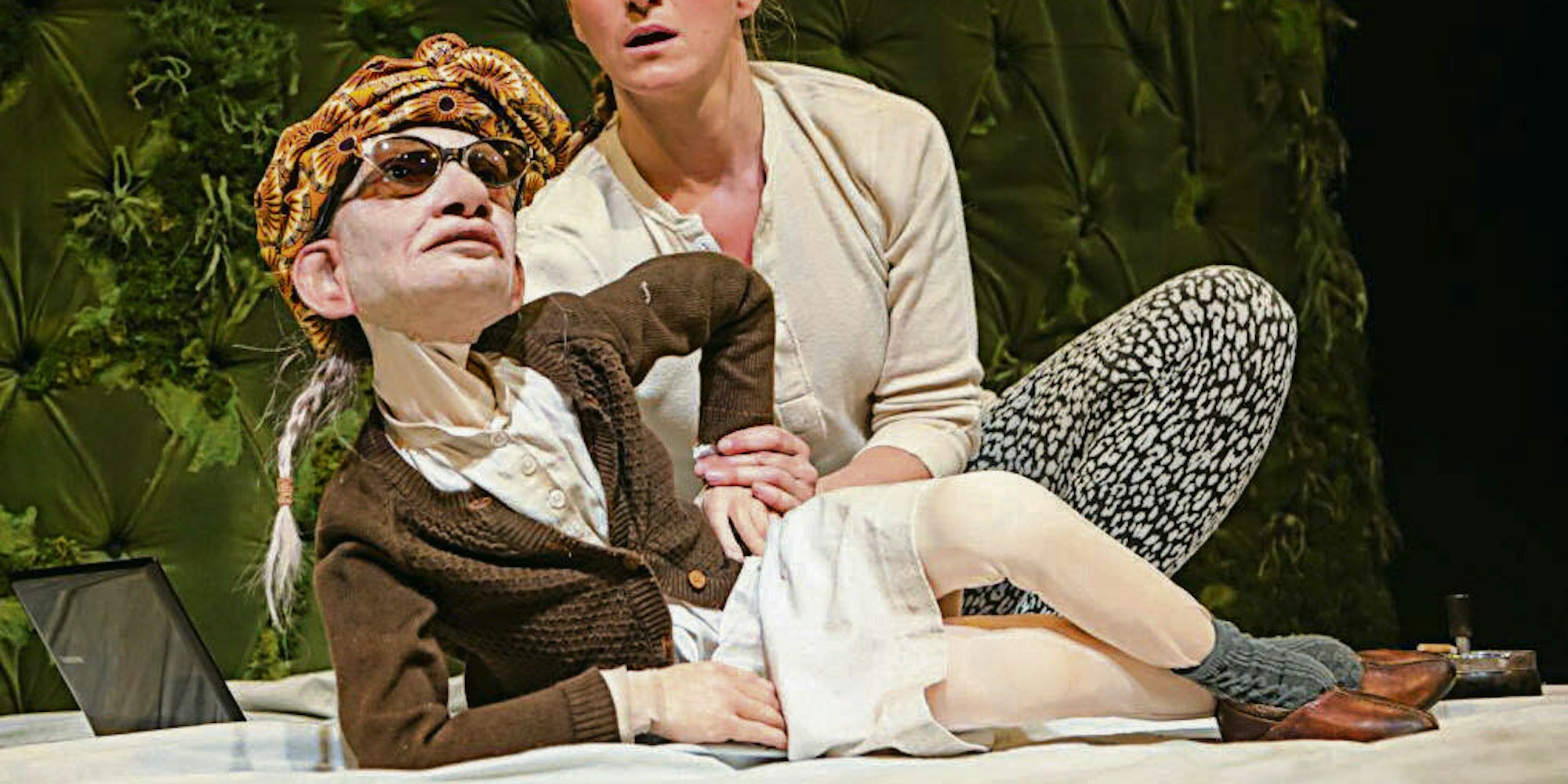 Das ist alles höchst amüsant. Und hat trotzdem einige Passagen, in denen man sich wünscht, dass die Regie straffer durchgegriffen hätte. Letztlich hängt der nur gut einstündige Abend an der großen Puppenspielkunst von Magda Lena Schlott, neben der Alten stellt sie uns auch noch deren nicht weniger wehrhaftes mädchenhaftes Ich vor und umreißt noch einige andere Charaktere, Kasperletheater-artig hinter dem Kopfteil des Bettes.