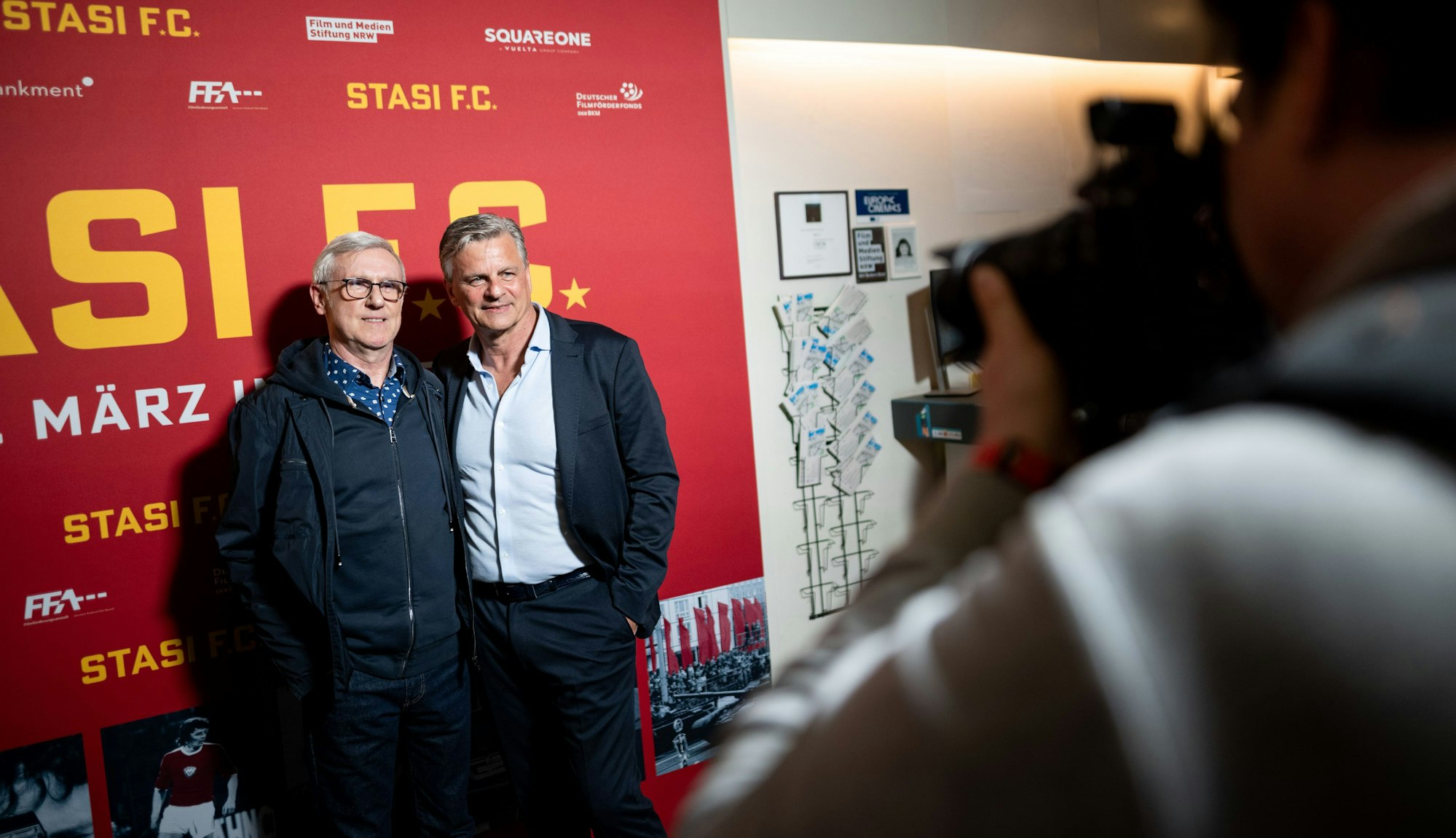 Dirk Schlegel (l.) und Falko Götz bei der Premiere von "Stasi FC" im Kölner Odeon Kino