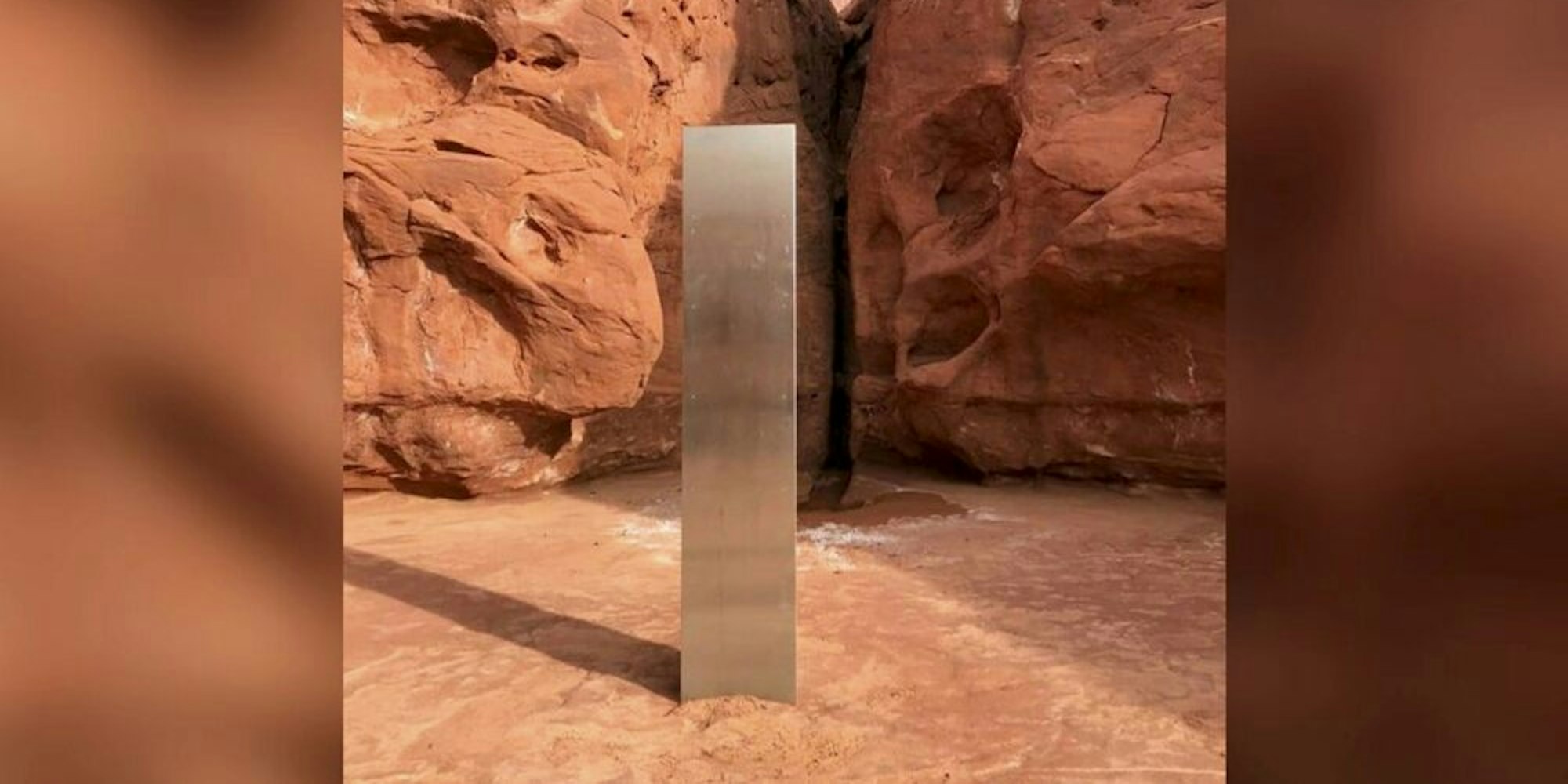 Hutchings landet den Helikopter, die Wildschützer steigen aus, gehen einen Felsabhang herunter und trauen ihren Augen nicht: Vor ihnen ragt ein rund drei Meter fünfzig hoher, silbern glänzender Monolith aus dem Sandboden. Er könnte aus poliertem, rostfreien Stahl sein (aber dann wäre es streng genommen kein Monolith), oder aus einer anderen Welt.