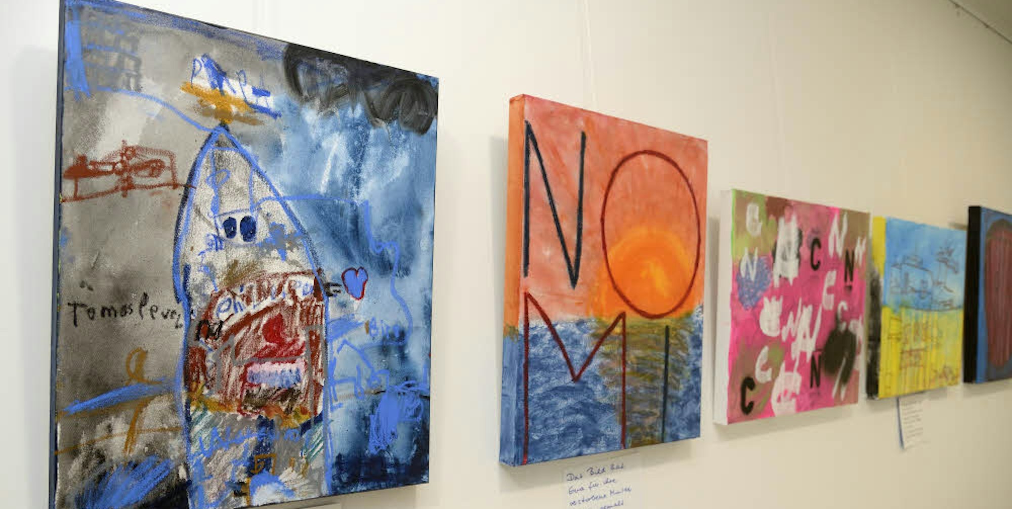 Bergisch Gladbach – Auf dem weißen Hintergrund sind zahlreiche Unendlichkeitssymbole, bunte Herzen, Gräser und neun Mal der Buchstabe A zu sehen. Sorgfältig hat die junge Künstlerin die Symbole auf ihre Leinwand gesprüht, die nun neben 80 weiteren Werken im Gladbacher Kreishaus hängt. Das Bild strahlt Freude und Lebendigkeit aus, doch die Besucher schienen eher nachdenklich und berührt zu sein, als sie das Werk von Lara und den anderen Kindern und Jugendlichen bei der Ausstellungseröffnung von „Erinnerungen“ betrachteten.