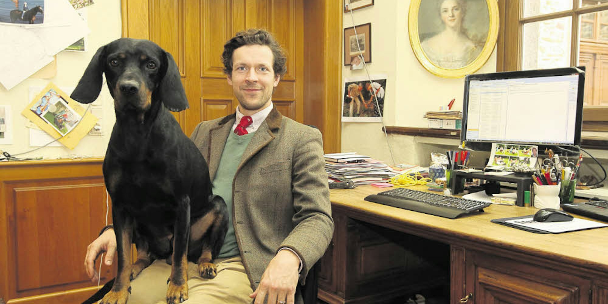 Enzo begleitet Max Graf von Nesselrode auf Schritt und Tritt, auch bei der Arbeit im Büro.