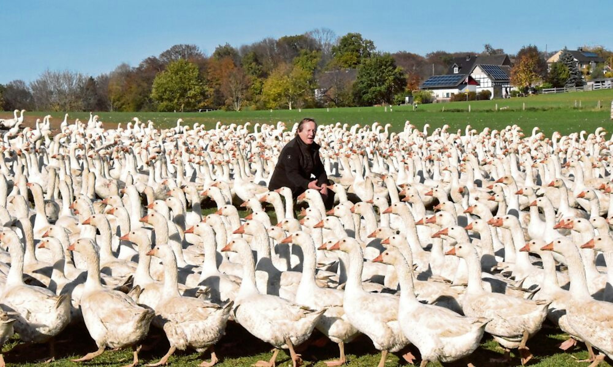 Archivbild: Inmitten der Gänseschar: Albert Trimborn vom Lohmarer Bauerngut Schiefelbusch.