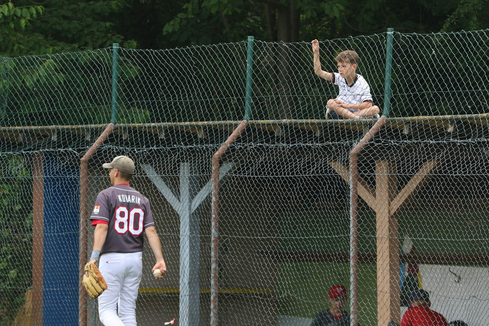 Genoss das schöne Baseball-Feeling: Yannik Petry (r.) von der Zweitligamannschaft Saarlouis Hornets, die zum wiederholten Male in Niederelvenich war.